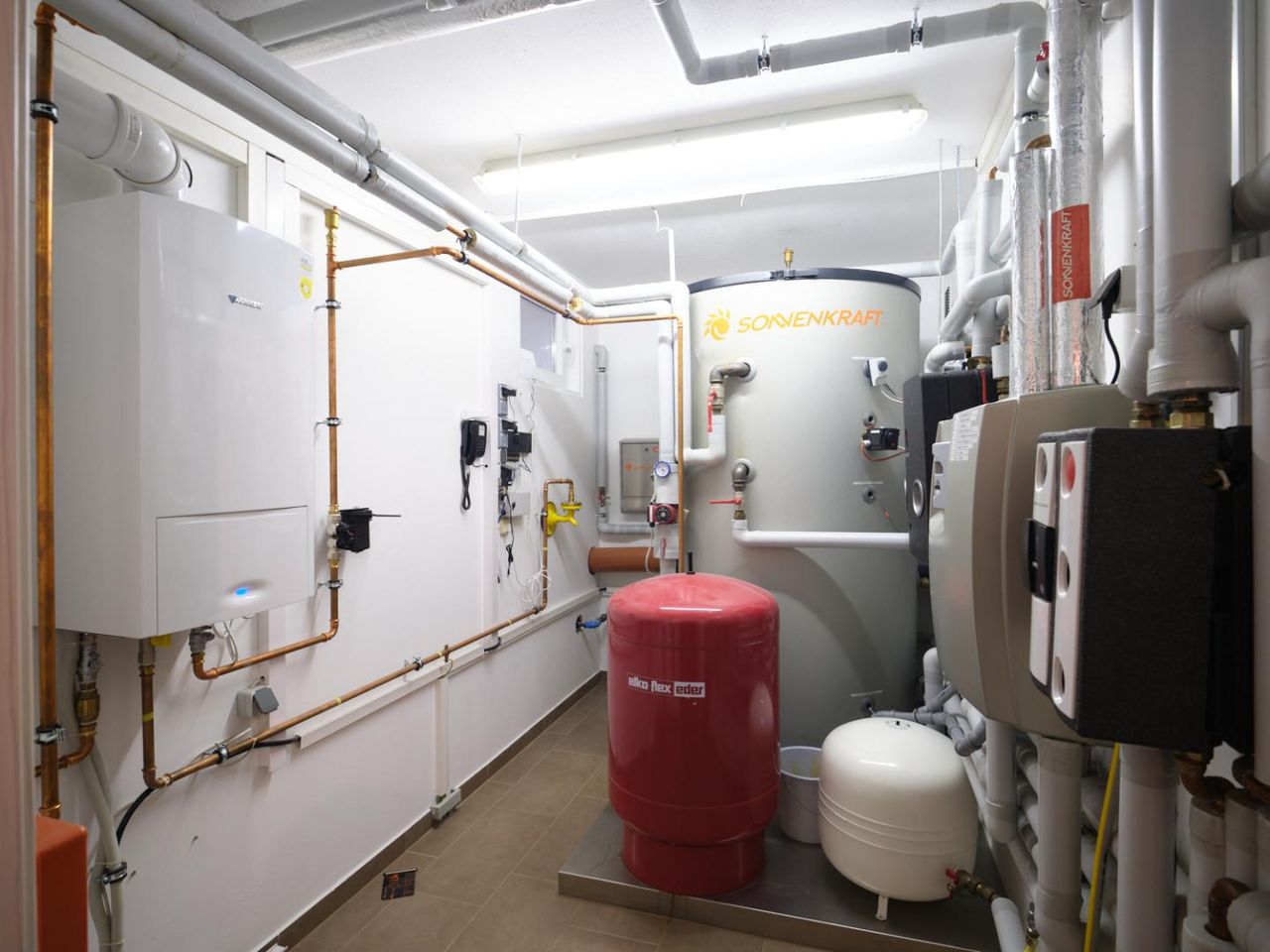 Geheizt wird das Haus über einen großen Schwedenofen der sich im Wohnbereich befindet, dieser ist mit der Heizung verbunden, die zusätzlich über eine Solaranlage versorgt wird. Außerdem wurde 2021 als Alternative eine Gastherme von Junkers instaliiert.