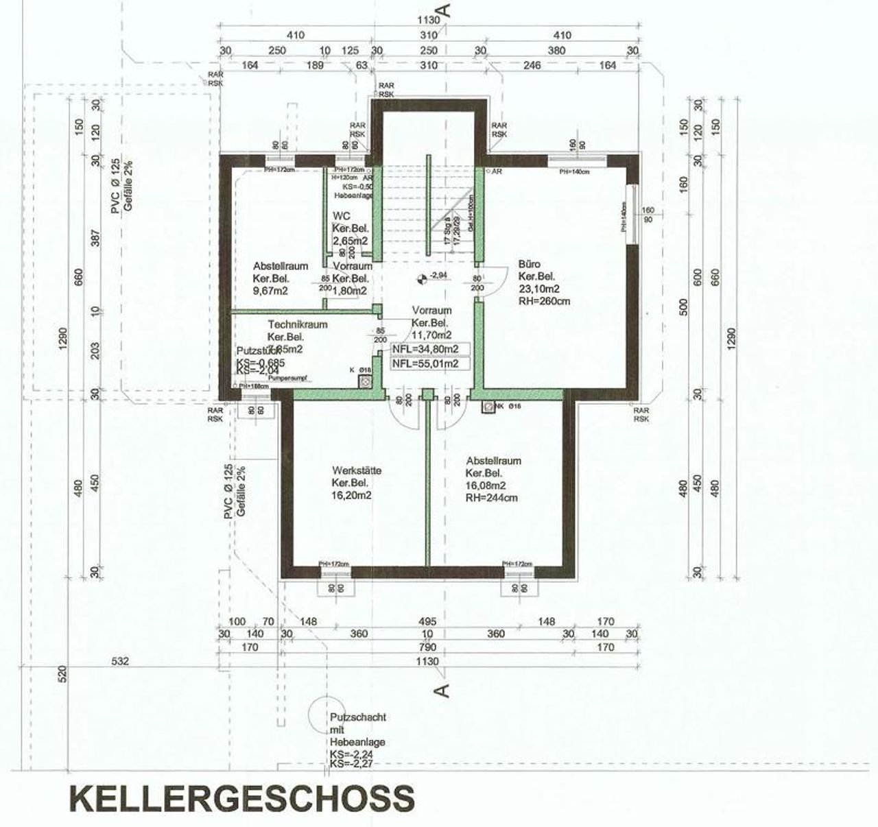 Das Gebäude ist voll unterkellert. Neben jeder Menge Stauraum bietet Ihnen der Keller Wohnraumqualität. Da auch der Keller über eine Fußbodenheizung sowie Fenster über Erdniveau verfügt, wurde hier ein Gästezimmer eingerichtet. Auch gibt es die Option, ein WC im Keller zu installieren.