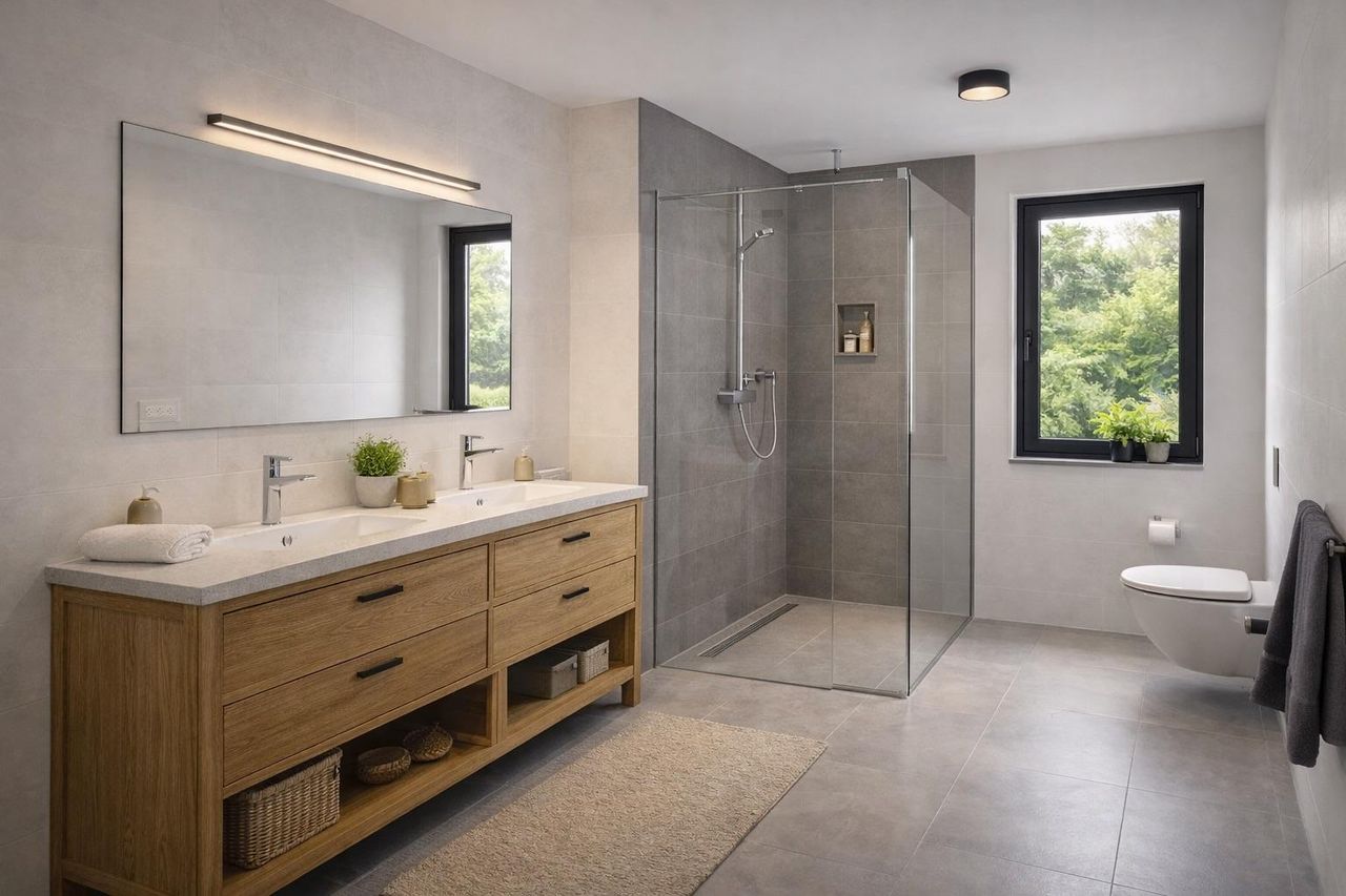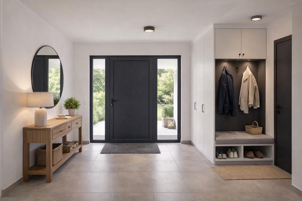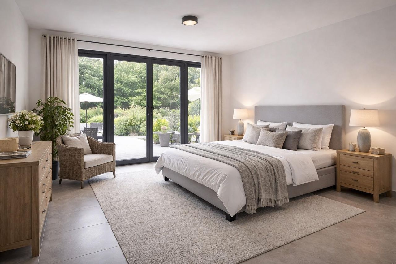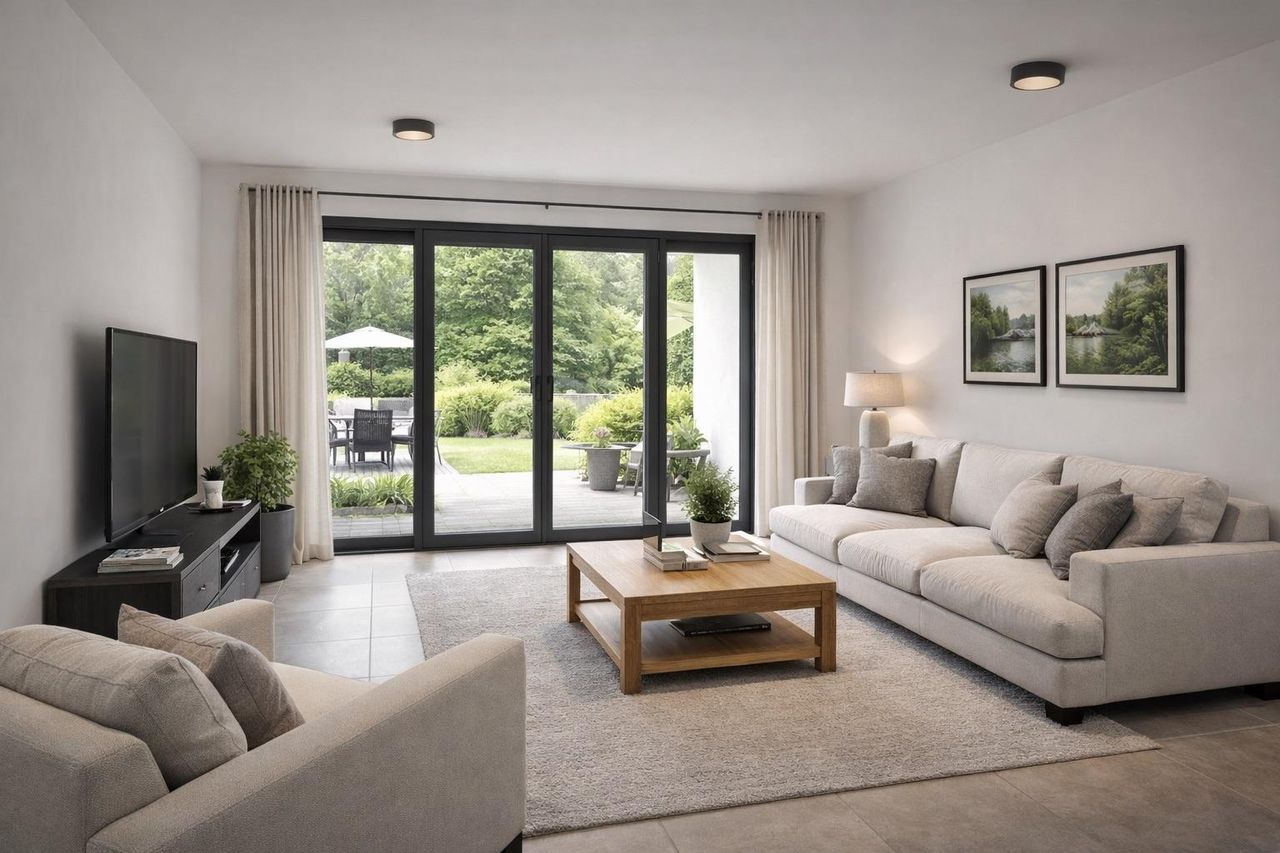 Luft-Wärmepumpen für energieeffizientes Heizen, die optional auf Kühlung erweitert werden können. Die Fußbodenheizung sorgt für eine angenehme Wärme im ganzen Haus und die großen, hochwertigen Qualitätsfenster mit 3-Scheiben-Isolier-Wärmeschutzverglasung tragen zur Energieeffizienz bei.