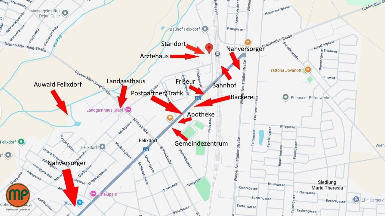 Das Objekt selbst befindet sich in unmittelbarer Nähe zum Ärztehaus Felixdorf.