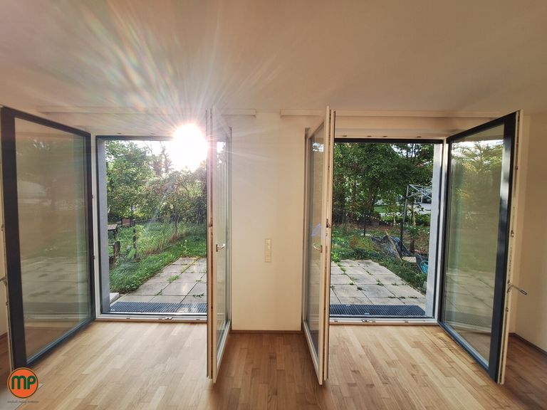 Massive Parkettböden in den Wohnräumen, ein zeitlos schönes Fliesendesign in den Sanitärräumen, eine Luftwärmepumpe für die hauseigene Heizung, einen eigenen KFZ-Stellplatz, eine Terrasse im Garten sowie im 2. Obergeschoß eine Dachterrasse. Ein besonderer Bonuspunkt ist die auf Allgemeingrund verfügbare Ladestation für E-Autos.