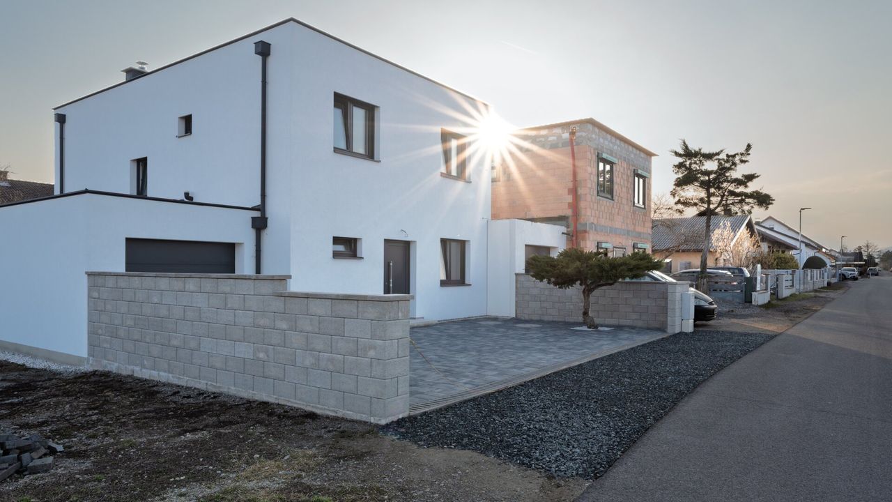 Dieses attraktive Einfamilienhaus wurde 2024-2026 gebaut und befindet sich in ruhiger Wohnlage am Rande von Theresienfeld mit Fernblick.