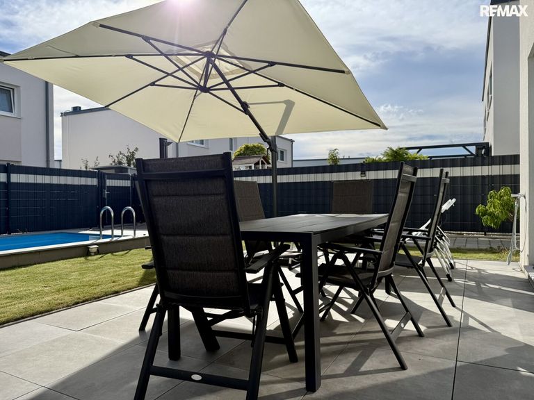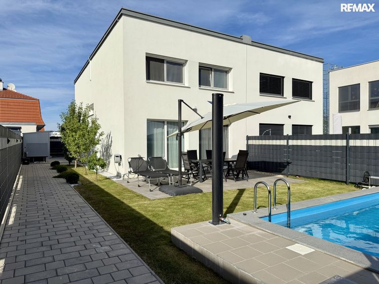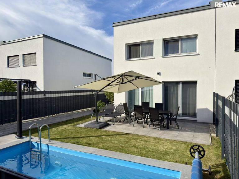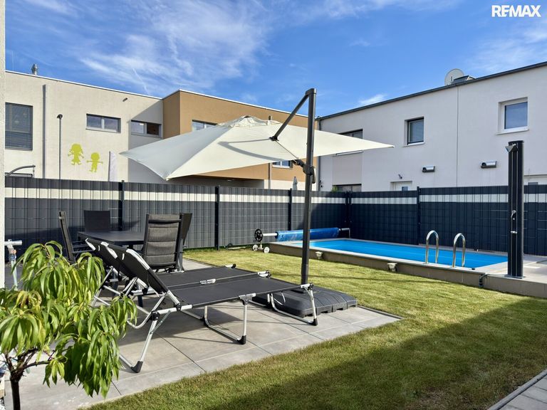 Das Haus verfügt über rund 117,65 m² Wohnfläche, zwei Stellplätze sowie ein Grundstück mit ca. 248,48 m². Der offene Wohn-Essbereich, die großzügige Raumaufteilung mit mehreren Schlafzimmern, ein Gäste-WC, ein Swimmingpool sowie eine moderne Küche machen dieses Objekt zu einem echten Highlight.