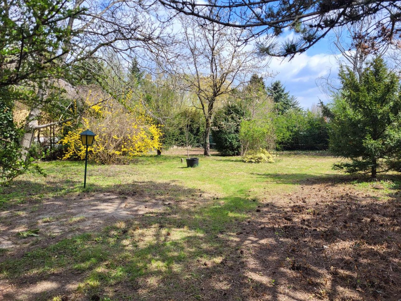 Wiesenfläche und vorhandenem Baum-, Strauch- und Pflanzenbestand.