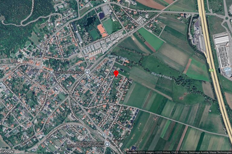 Ruhige Wohnstraße in Bad Fischau-Brunn – in wenigen Minuten erreichen Sie zu Fuß den Bahnanschluss, Schulen, Einkaufsmöglichkeiten und das bekannte Thermalbad. Wiener Neustadt ist nur etwa 10 Minuten entfernt.