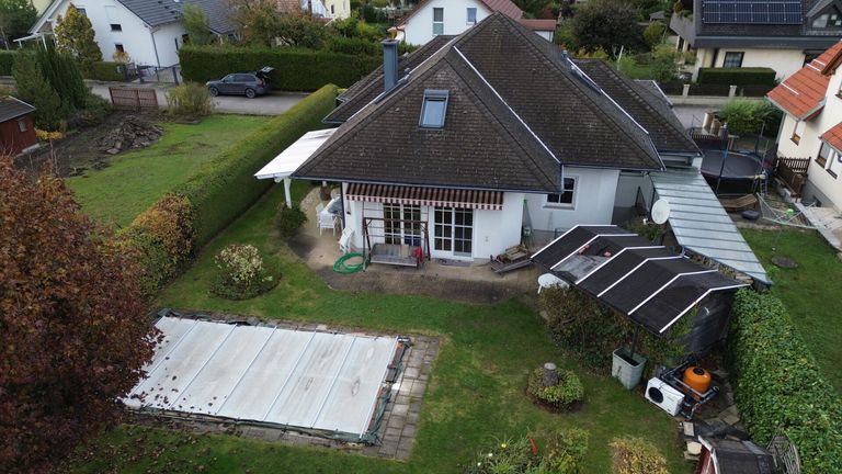 Auf rund 150 m² Wohnfläche (Erd- und Dachgeschoß) sowie 96 m² Kellerfläche bietet das Haus Platz für Familie, Gäste und Freizeit. Eine Garage, ein Carport für zwei PKW, ein beheizter Pool und eine Sauna machen das Objekt zu einem Zuhause mit hohem Wohn- und Freizeitwert.