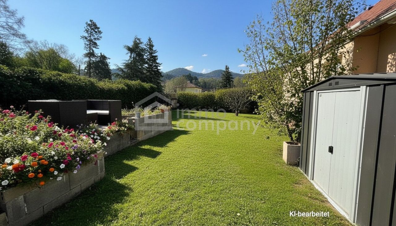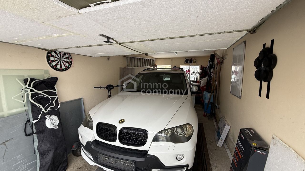 Zum Haus gehört außerdem eine Garage mit knapp 20 m², die ausreichend Platz für einen mittelgroßen SUV bietet. Im Außenbereich lädt eine nach Süd-Ost ausgerichtete Terrasse dazu ein, sonnige Stunden im Freien zu genießen. Rund um das Haus befindet sich viel Grünfläche, die vielfältige Nutzungsmöglichkeiten bietet – vom Garten bis zur Erholung im Freien.