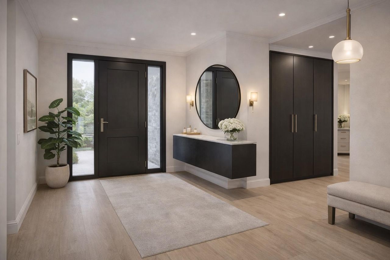 Luft-Wärmepumpen für energieeffizientes Heizen, die optional auf Kühlung erweitert werden können. Die Fußbodenheizung sorgt für eine angenehme Wärme im ganzen Haus und die großen, hochwertigen Qualitätsfenster mit 3-Scheiben-Isolier-Wärmeschutzverglasung tragen zur Energieeffizienz bei.