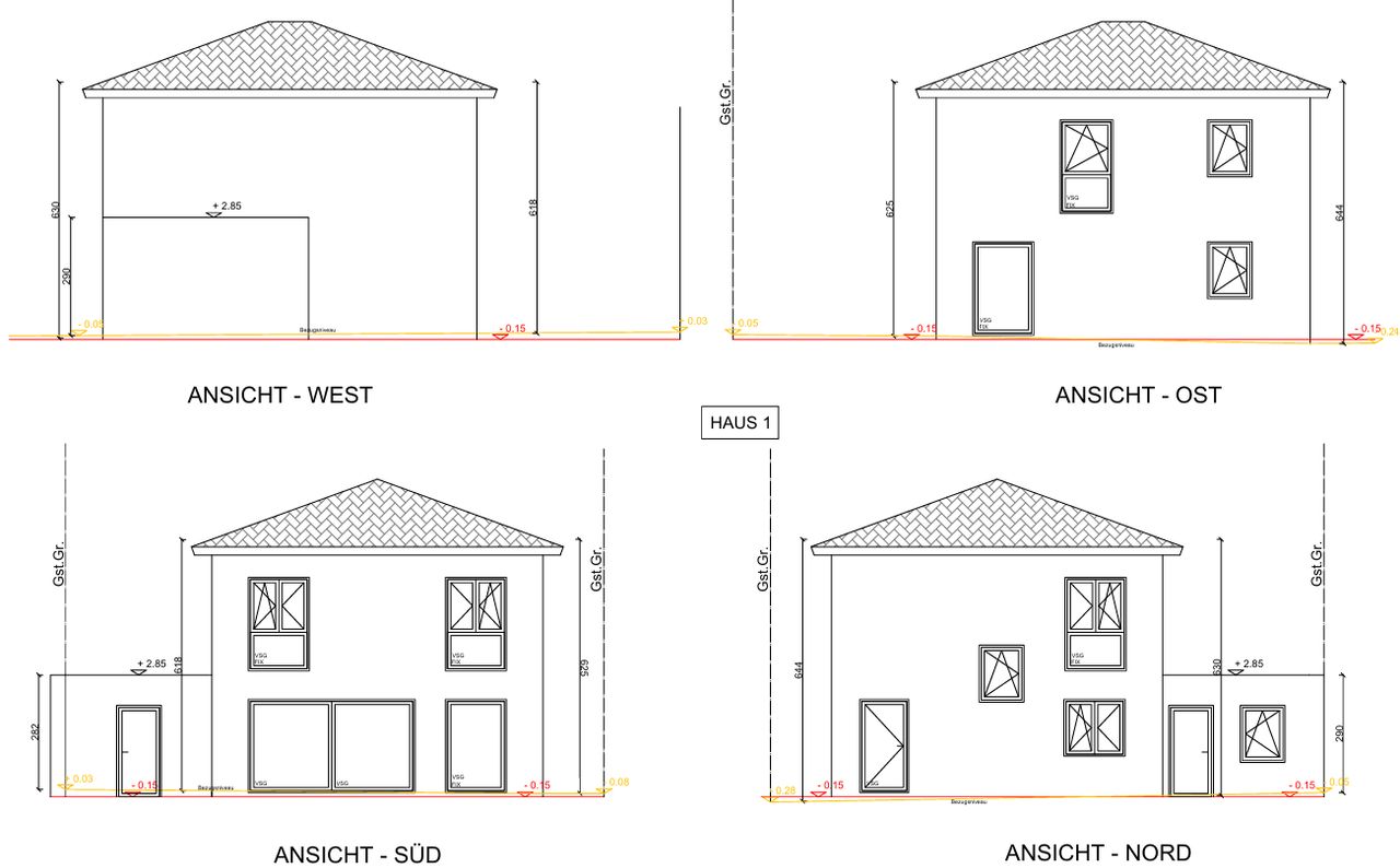 Die Einfamilienhäuser werden in Massivbauweise errichtet und sind Niedrigenergiehäuser.