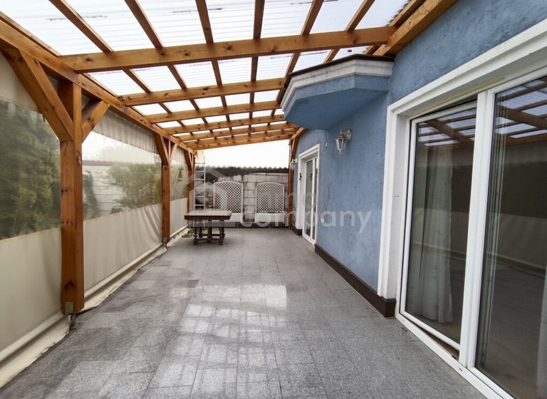 Vom seitlichen Eingangsbereich gelangen Sie in die helle Küche mit angrenzendem ca. 50m² großen Wohn-Essbereich mit Ausgang auf die überdachte 38m² große Terrasse. Genießen Sie hier gesellige Stunden mit Ihren Freunden und der Familie, den Platz dazu haben Sie!