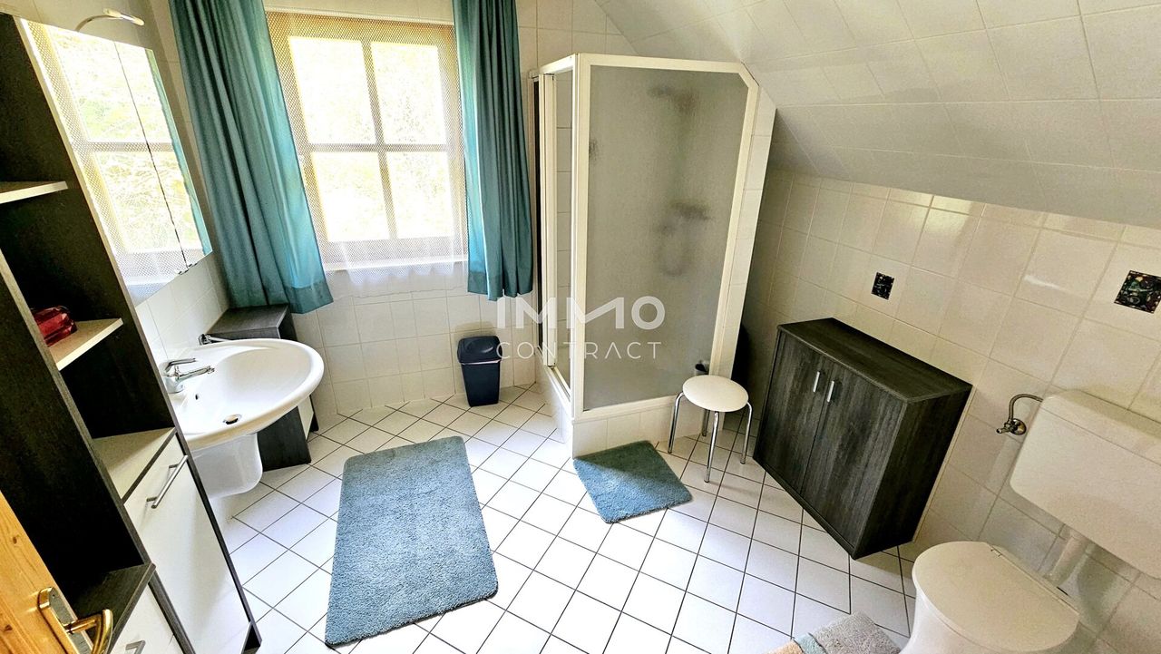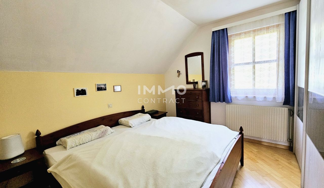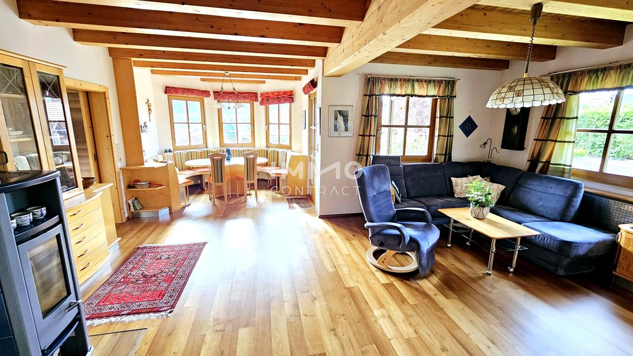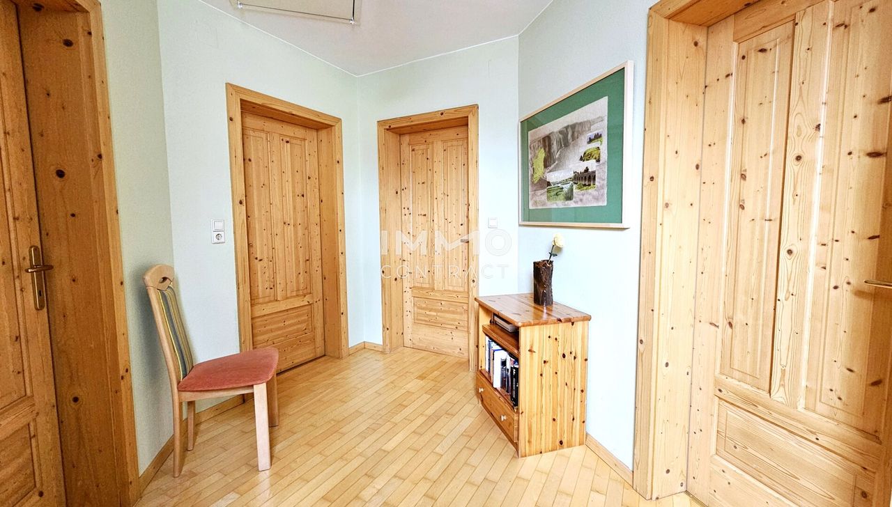 Viel Platz für die Familie - Job - Hobby Ihr neues Zuhause mit insgesamt ca. 213 m2 Wohnfläche wurde 1997 in energieeffizienter Fertigteilbauweise von der Firma WOLF errichtet, befindet sich auf einem 577 m2 großen Grundstück in Hanglage und ist nach Süden ausgerichtet. Der an das komplett unterkellerte Einfamilienhaus angeschlossene Anbau (2002) eröffnet flexible Nutzungsmöglichkeiten. Dank des separaten Eingangs eignet er sich hervorragend als Büro- oder Praxisbereich, aber auch als eigenständige Wohneinheit – ideal für individuelle Lebens- und Arbeitskonzepte. Das Erdgeschoß besteht aus einem großzügigen Wohn-/Esszimmer mit Specksteinofen, moderner Küche, Gästezimmer, Bad mit Badewanne, Gäste WC und Vorzimmer. Vom Wohnzimmer...