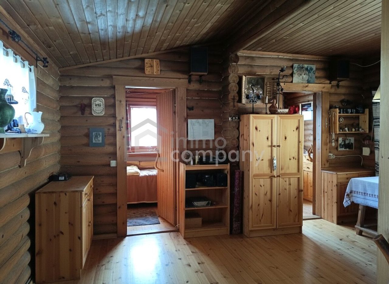 Das Blockbohlenhaus wurde auf einem stabilen Betonfundament auf Piloten errichtet. So war das Holz über die Jahre nie im Kontakt mit Erde und ist in sehr gutem Zustand.