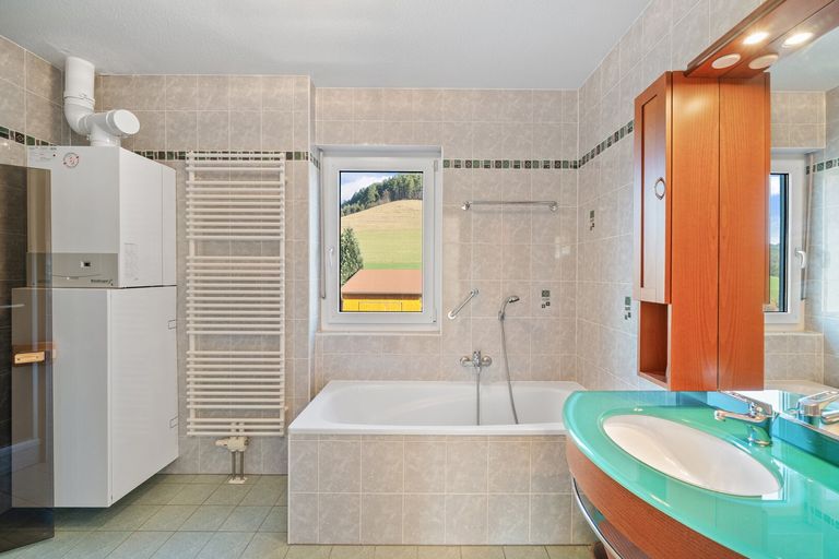 Die Beheizung erfolgt über eine Gaszentralheizung.