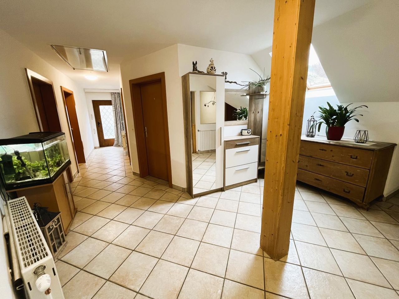 > aufgeteilt in Erdgeschoss und Dachgeschoss