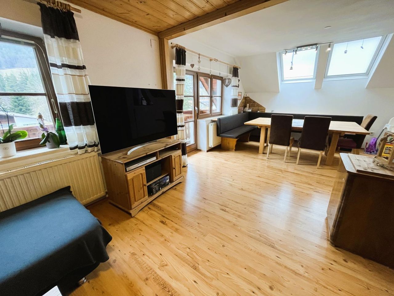> großzügiger Wohn- und Essbereich mit Zugang zum Balkon