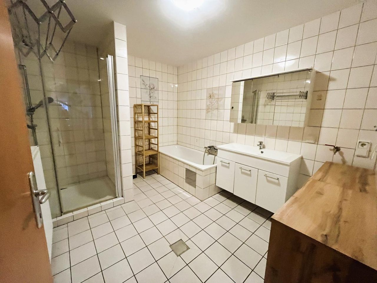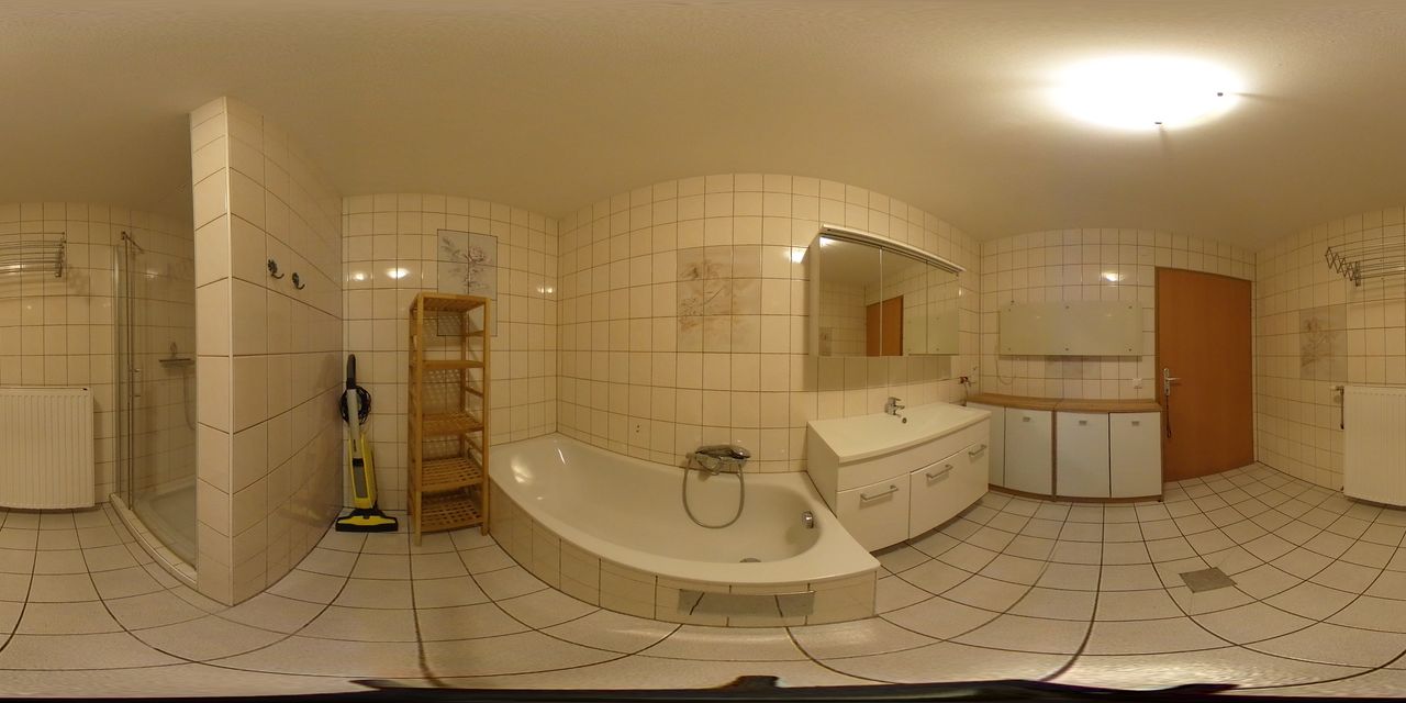 > Badezimmer mit Badewanne und Dusche