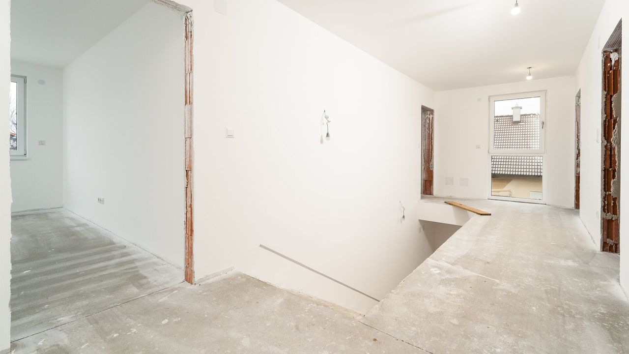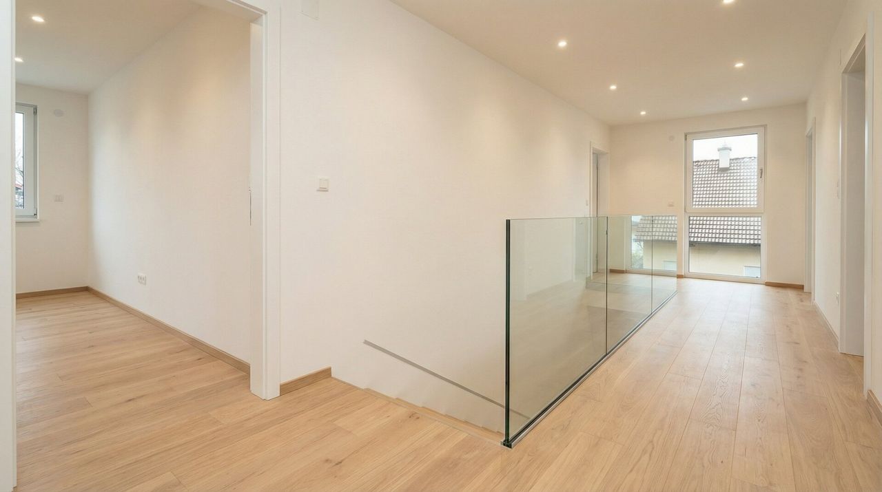 - bestehend im Erdgeschoß aus: Vorraum, WC, Abstellraum, Zimmer, Wohnküche im Obergeschoß bestehend aus: Vorraum, Abstellraum, Bad mit Dusche/Wanne, WC, 3 Zimmer (zwischen 14m² - 17m²) sowie einer Loggia