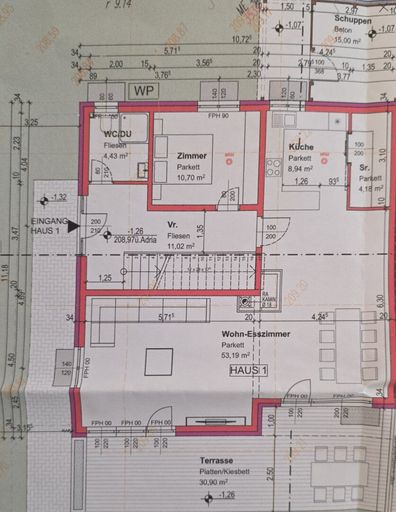 - bestehend im Erdgeschoß aus: Vorraum, WC, Abstellraum, Zimmer, Wohnküche