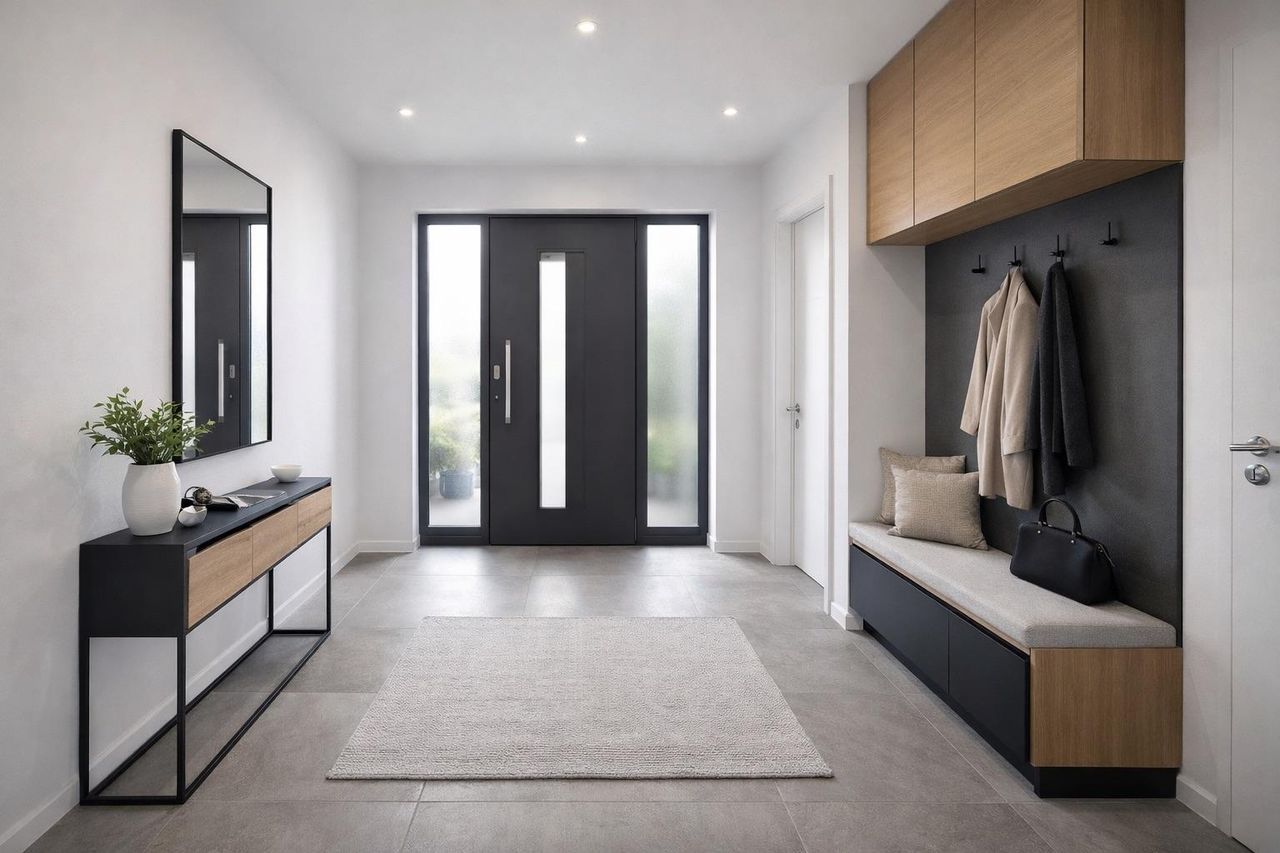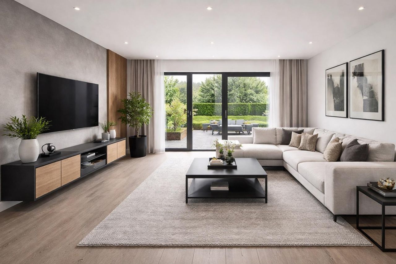 Luft-Wärmepumpen für energieeffizientes Heizen, die optional auf Kühlung erweitert werden können. Die Fußbodenheizung sorgt für eine angenehme Wärme im ganzen Haus und die großen, hochwertigen Qualitätsfenster mit 3-Scheiben-Isolier-Wärmeschutzverglasung tragen zur Energieeffizienz bei.