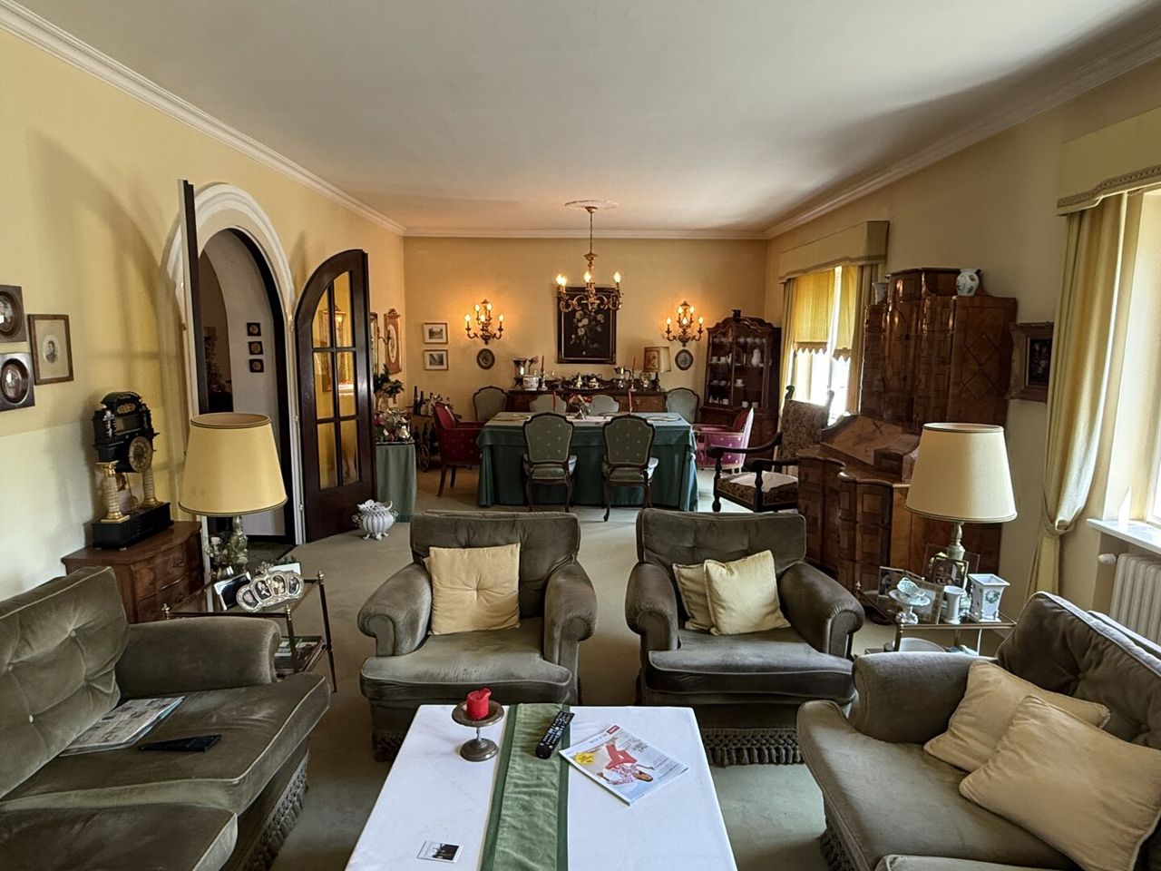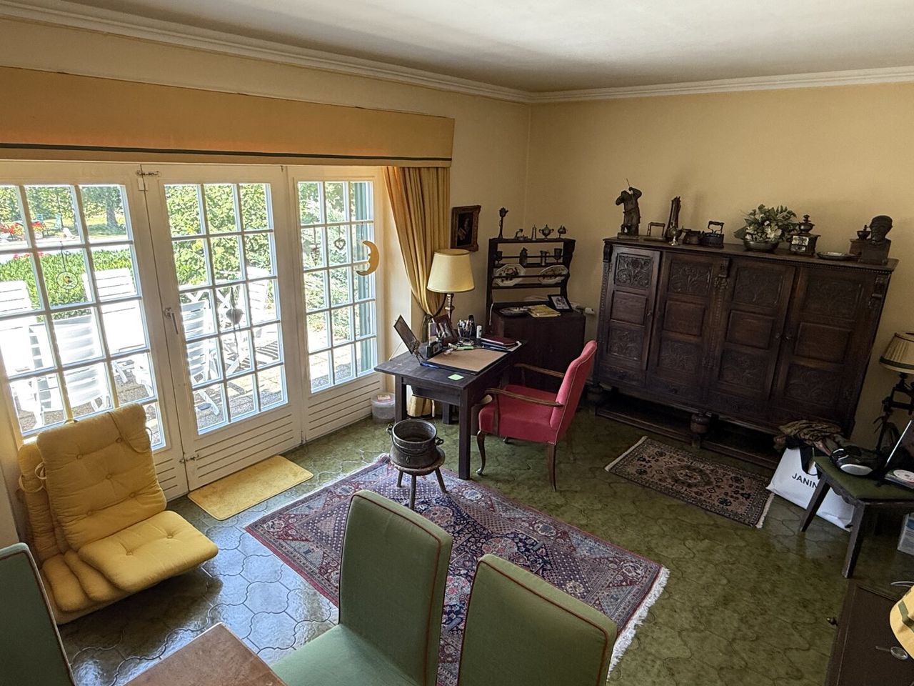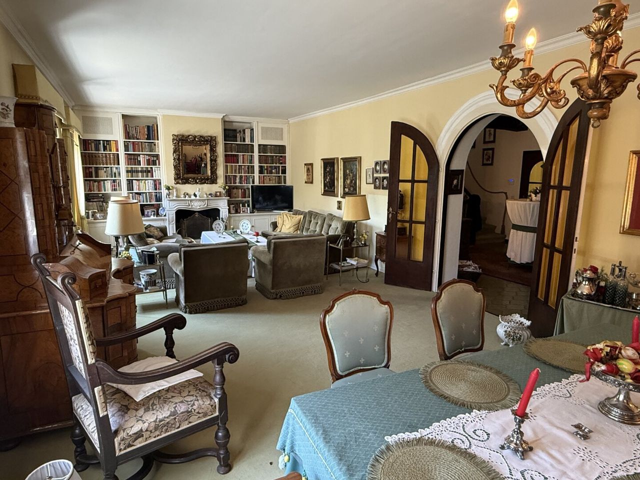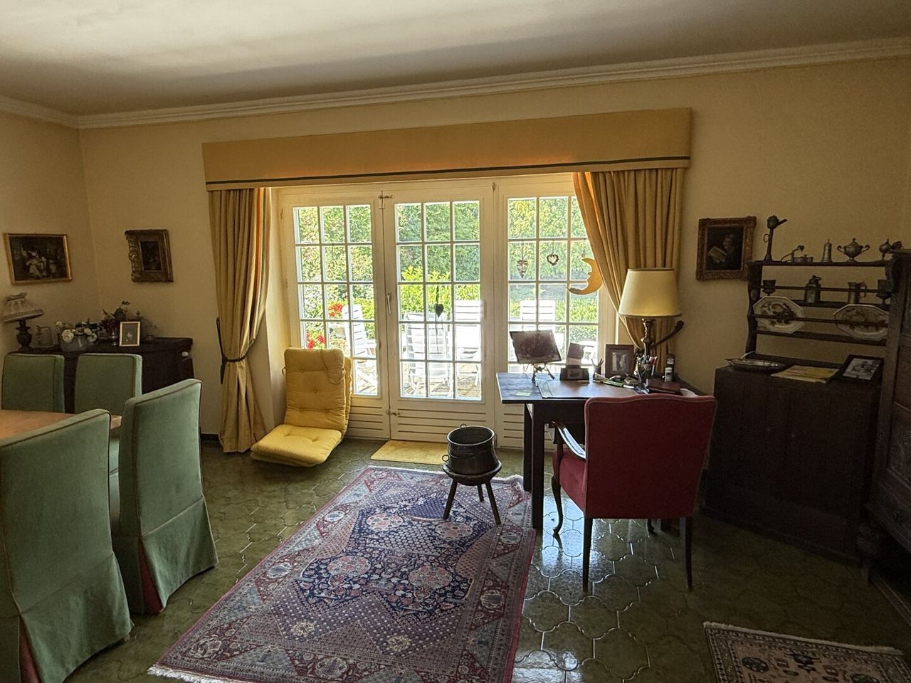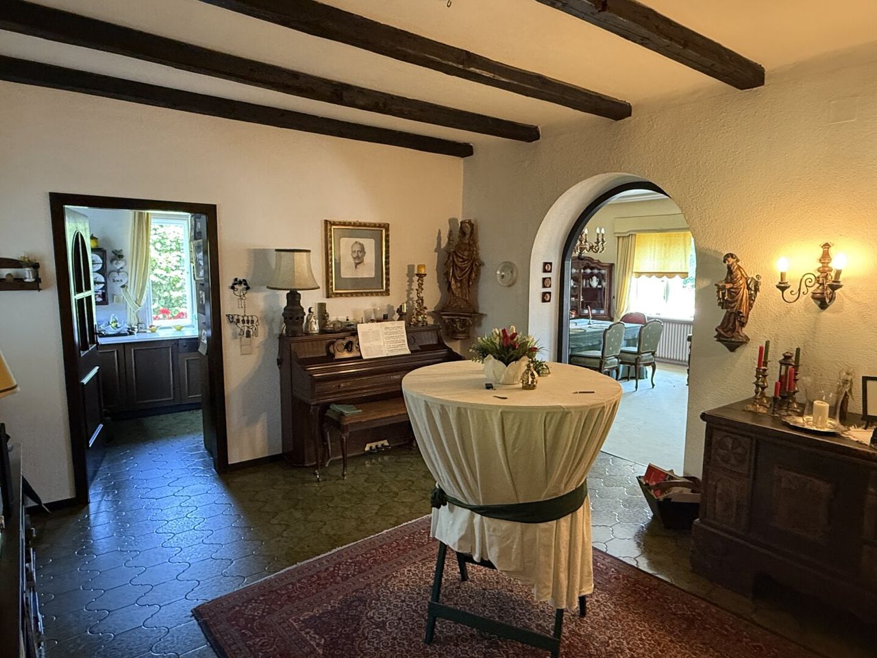 ERDGESCHOSS: großzügige Diele, Küche, großer Wohn- Essbereich mit offenem Kamin, Verandazimmer mit Ausgang auf die Terrasse,