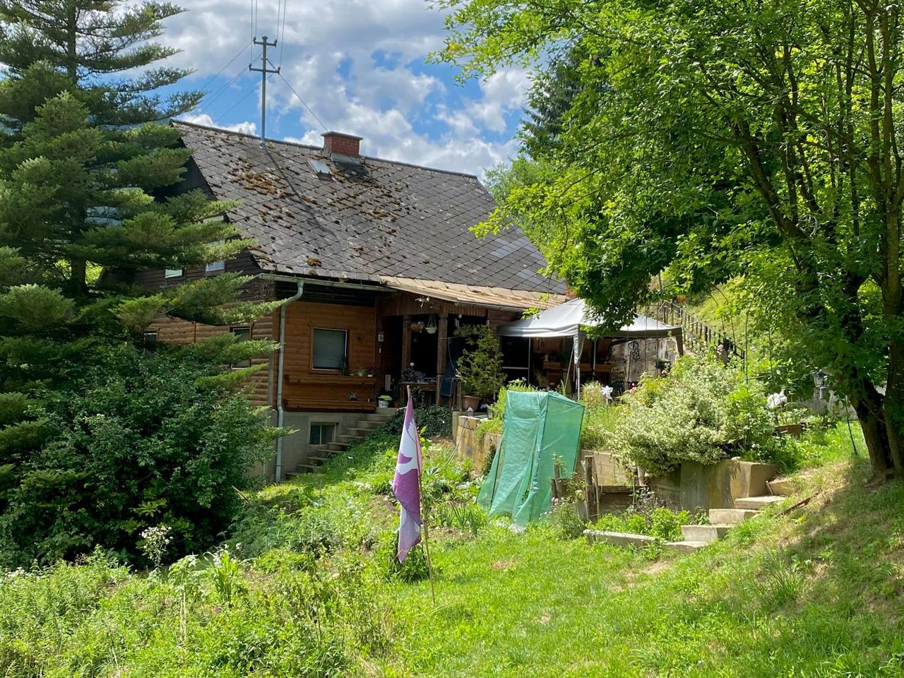 Eine Wald und Wiesenliegenschaft mit einem Holzhaus in ruhiger Lage sucht einen neuen Besitzer.
