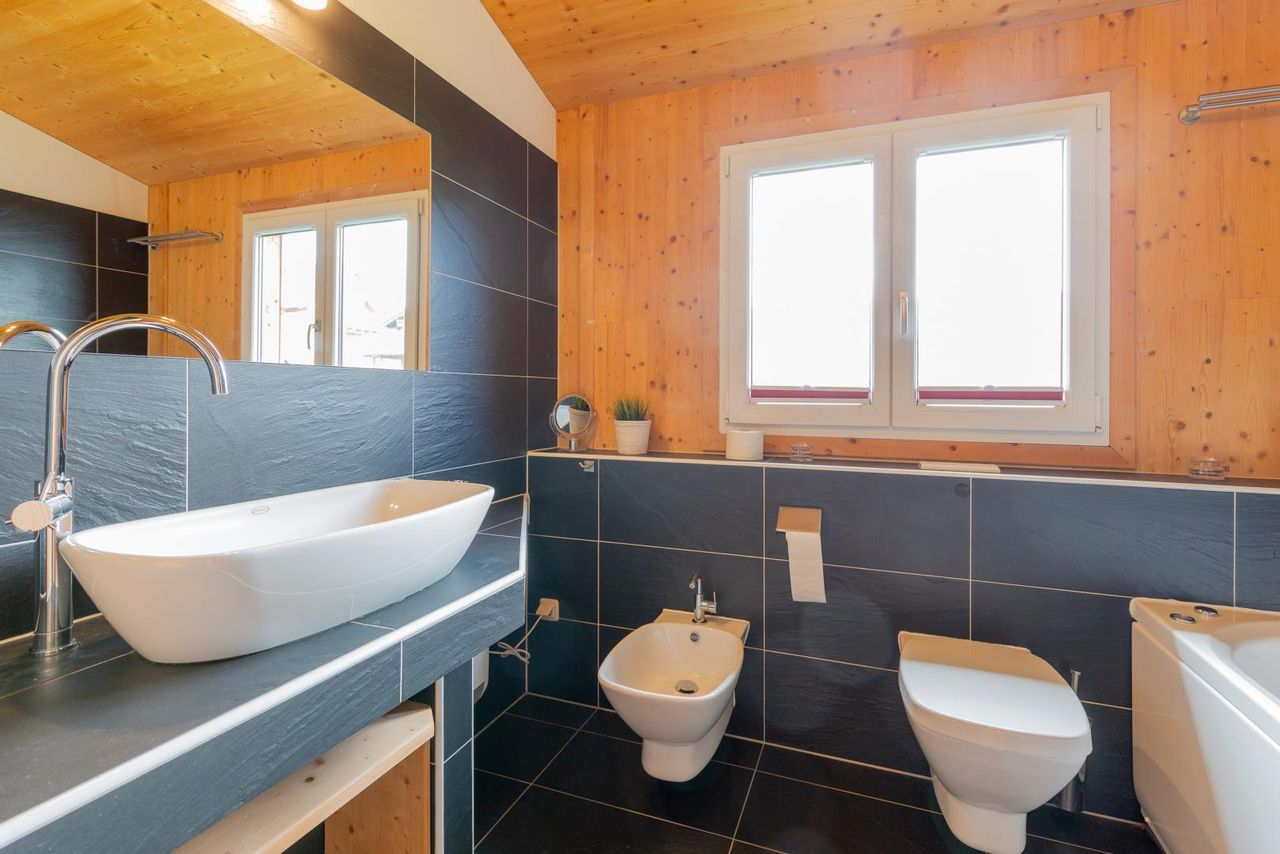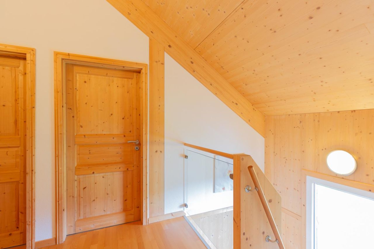 Die Raumaufteilung ist optimal: Im Erdgeschoss finden Sie einen großen, offenen Wohn-/Essbereich mit angrenzender Küche und großer Terrasse mit Blick ins Tal. Weiters stehen ein Abstellraum und ein Badezimmer mit Infrarotkabine und WC im Erdgeschoss zur Verfügung.