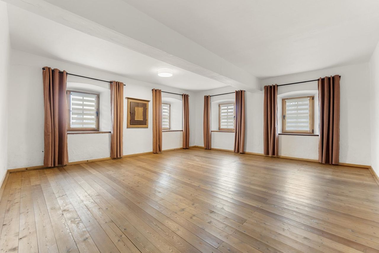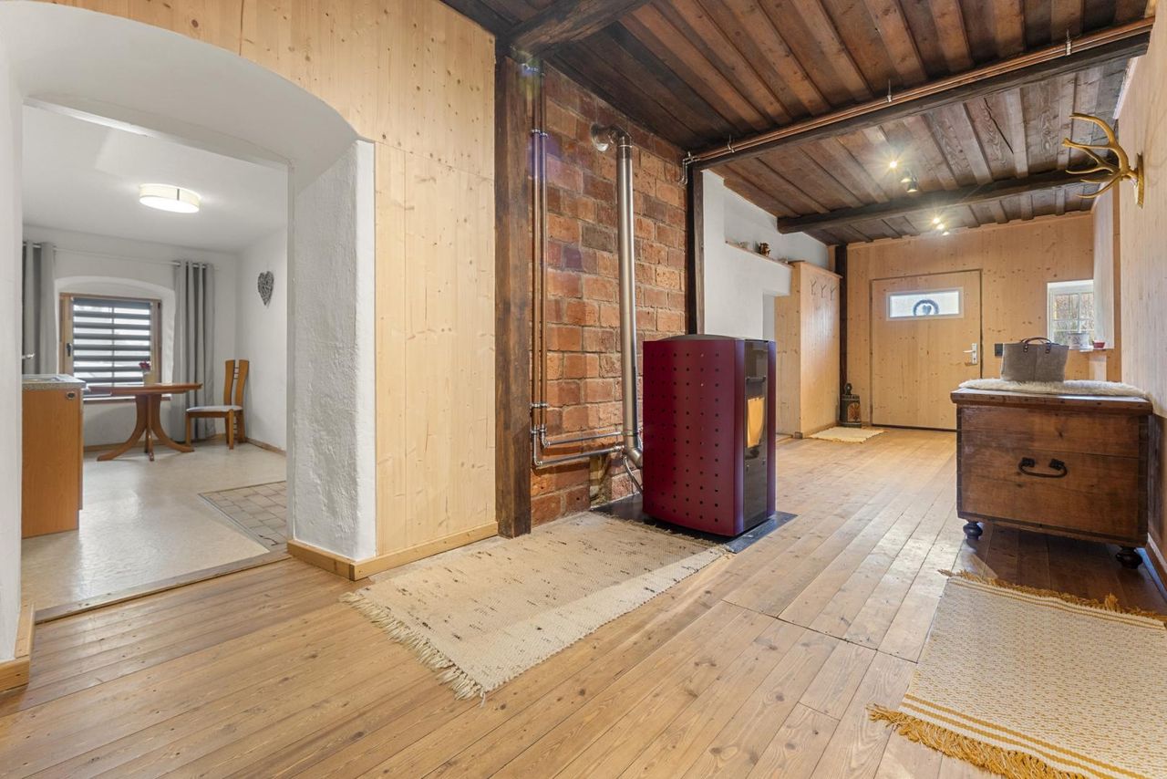 Dieses außergewöhnliche Bauernhaus in ländlicher Lage erzählt Geschichte und lädt zugleich dazu ein, sie weiterzuschreiben. Das Haus ist eines der ältesten Häuser in der Gemeinde Reichenfels und vereint auf einzigartige Weise den Charme vergangener Zeiten mit behutsamer Sanierung und viel Liebe zum Detail. Rustikaler Holz-Stil, alte massive Steinmauern und eine dicke Holztramdecke schaffen eine warme, authentische Wohnatmosphäre mit angenehmem Raumklima, wie man sie heute nur noch selten findet. Im Erdgeschoss bietet sich Ihnen auf einer Wohnfläche von ca. 93,42 m² ein einzigartiges Wohngefühl. Zusätzliches Potenzial zur Erweiterung des Wohnraums bietet das Dachgeschoss mit einer Fläche von ca. 134,60 m² sowie im Erdgeschoss der unausgebaute Lagerraum mit ca. 44,76 m² und der Kellerraum mit ca. 15,30 m².