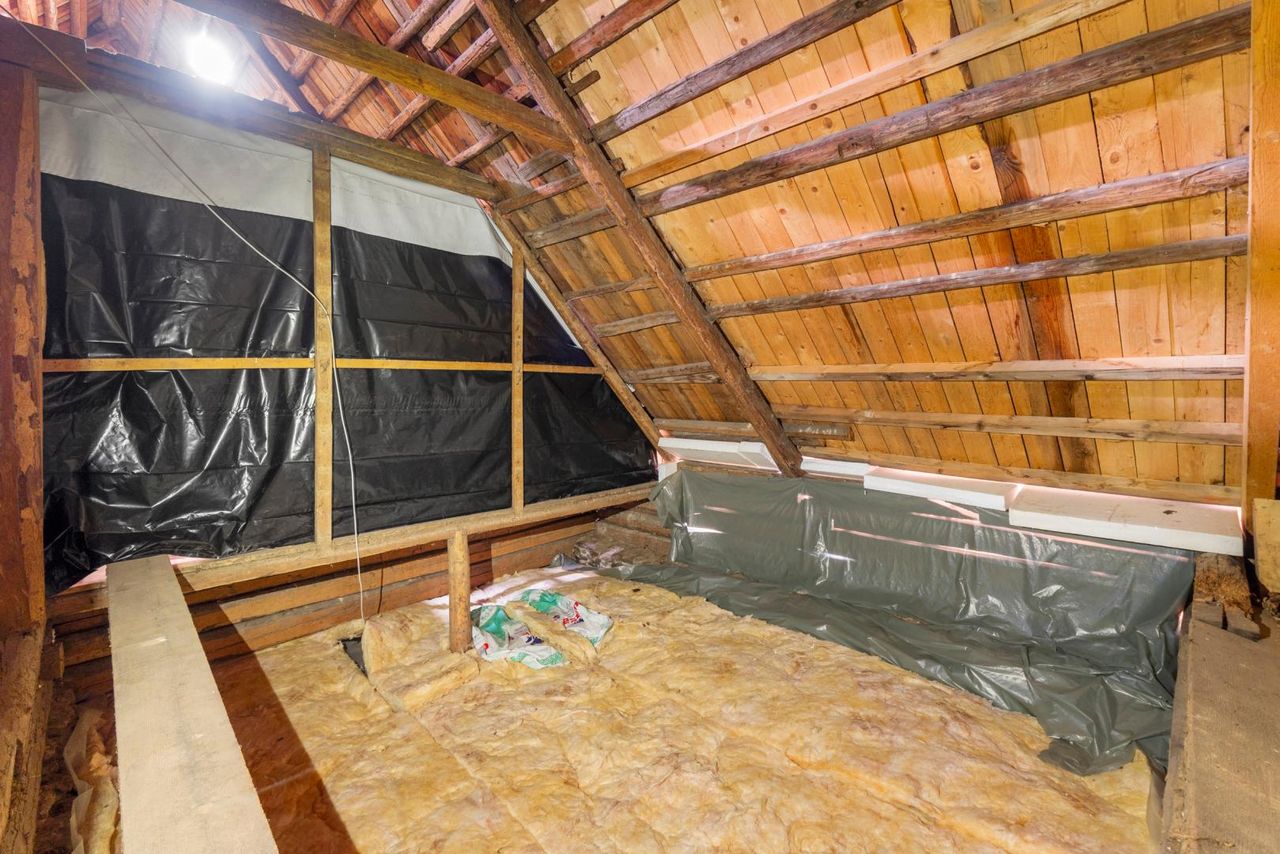 Innen wurden stellenweise Vorsatzschalungen angebracht, im Vorhaus, teilweise im Badezimmer und in der Küche sorgen hochwertige 3-Schicht-Vollholzplatten für ein stimmiges, behagliches Gesamtbild. Das Haus wurde außen rundherum abgedichtet, das Dach ist ein Kaltdach und die Dacheindeckung stammt aus der Zeit vor rund 30 Jahren. Die Dachgeschossdecke ist mit einer ca. 10 cm starken Glaswolle gedämmt, großteils ist auch das Dachgeschoss bereits isoliert.