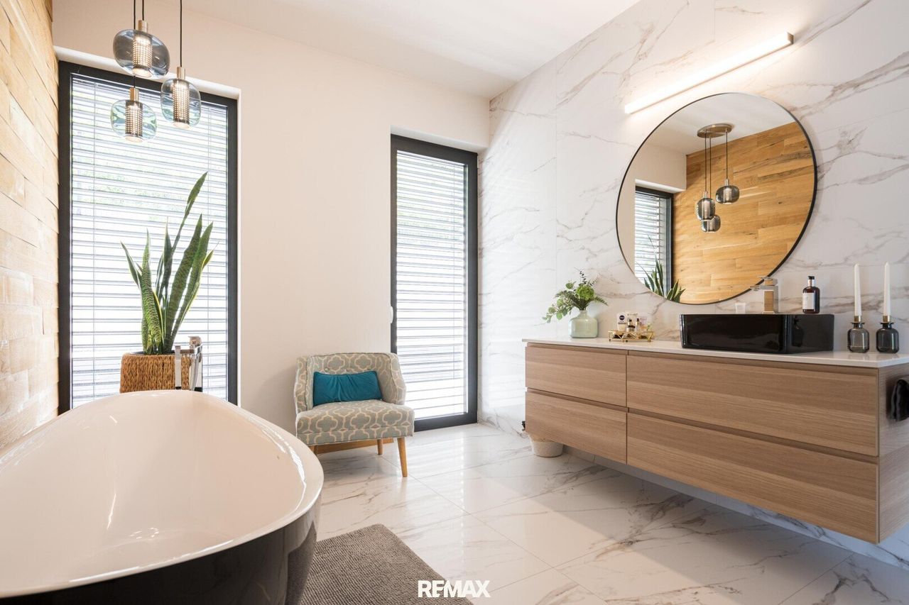 "Exklusives Haus für exklusive Leute" * neues, 2023 fertiggestelltes Haus mit Exklusivität * ca. 191,5 m² Wohnfläche * extrem gutes Wohn- und Raumgefühl durch große Raumhöhen * Wohnen, Essen, Kochen: Raumhöhe 3,62 m * Schlafen, Garderobe und Sanitär: Raumhöhe 2,9 m * 3 Schlafzimmer, davon eines mit Loggia * großer, offener Wohn-Ess-Kochbereich mit ca. 92 m² * Küche bis 3,5 m Höhe verbaut, bietet enorm viel Stauraum * kleines Gästebad mit Dusche und WC * großes Masterbad mit freistehender Wanne und WC * hochwertige, große Steinfliesen im Wohnbereich 1,2 m x 1,2 m * Klimaanlage im Wohn-Ess-Kochbereich * riesige, beinahe...