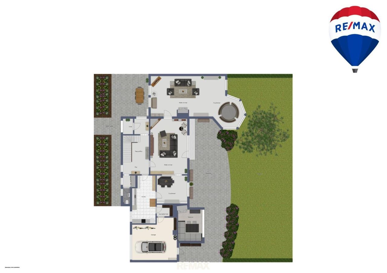 - vorderseitig gibt es eine 2. überdachte Terrasse mit großzügigem Vorgarten