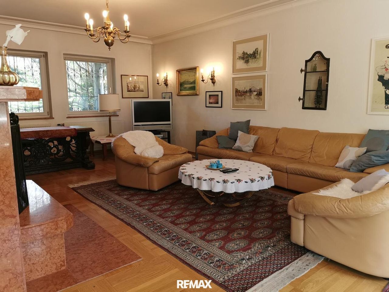 - Großzügiges Wohnzimmer mit offenem Mamor-Kamin, Wohnsalon mit Kamin und angrenzender Bauernstube, durchgehend Echtholz-Parkettboden