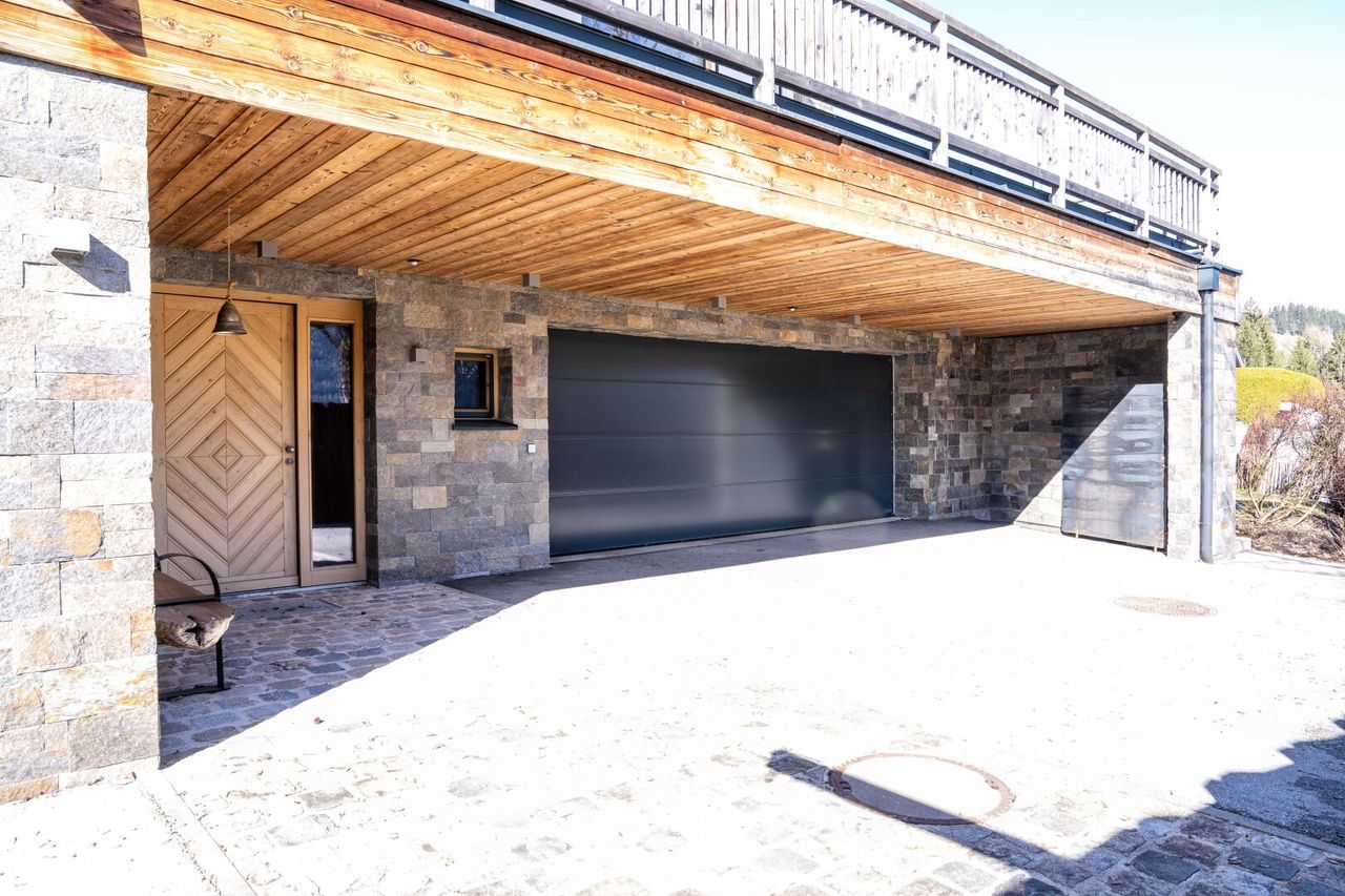 Das 2017 errichtete Haus mit traditionellem Satteldach verfügt über einen Personenlift, der alle Ebenen bequem erschließt. Die umweltfreundliche Luftwärmepumpe sorgt für effiziente Beheizung. Auf dem 591 m² großen Grundstück stehen zudem zwei Parkplätze zur Verfügung. Dieses Ferienhaus kombiniert modernen Wohnkomfort mit alpinem Charme und bietet einen idealen Rückzugsort in den österreichischen Alpen.