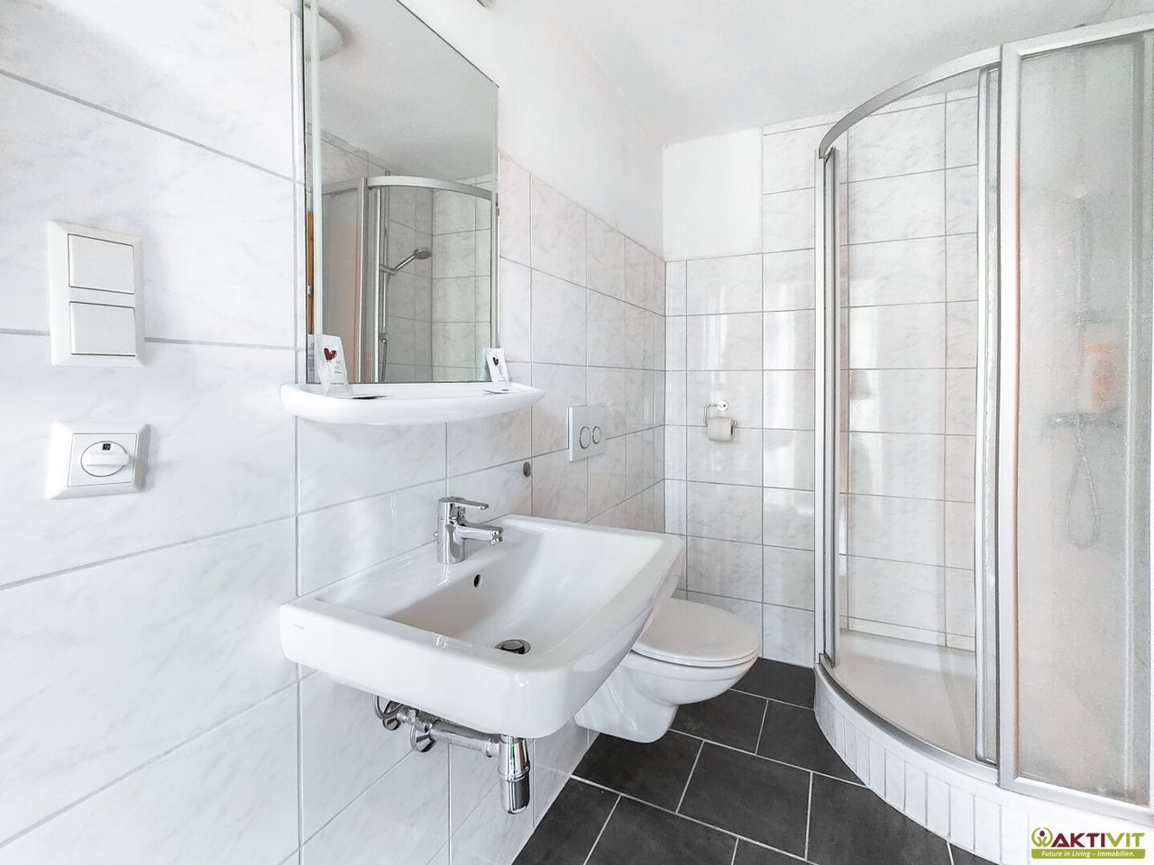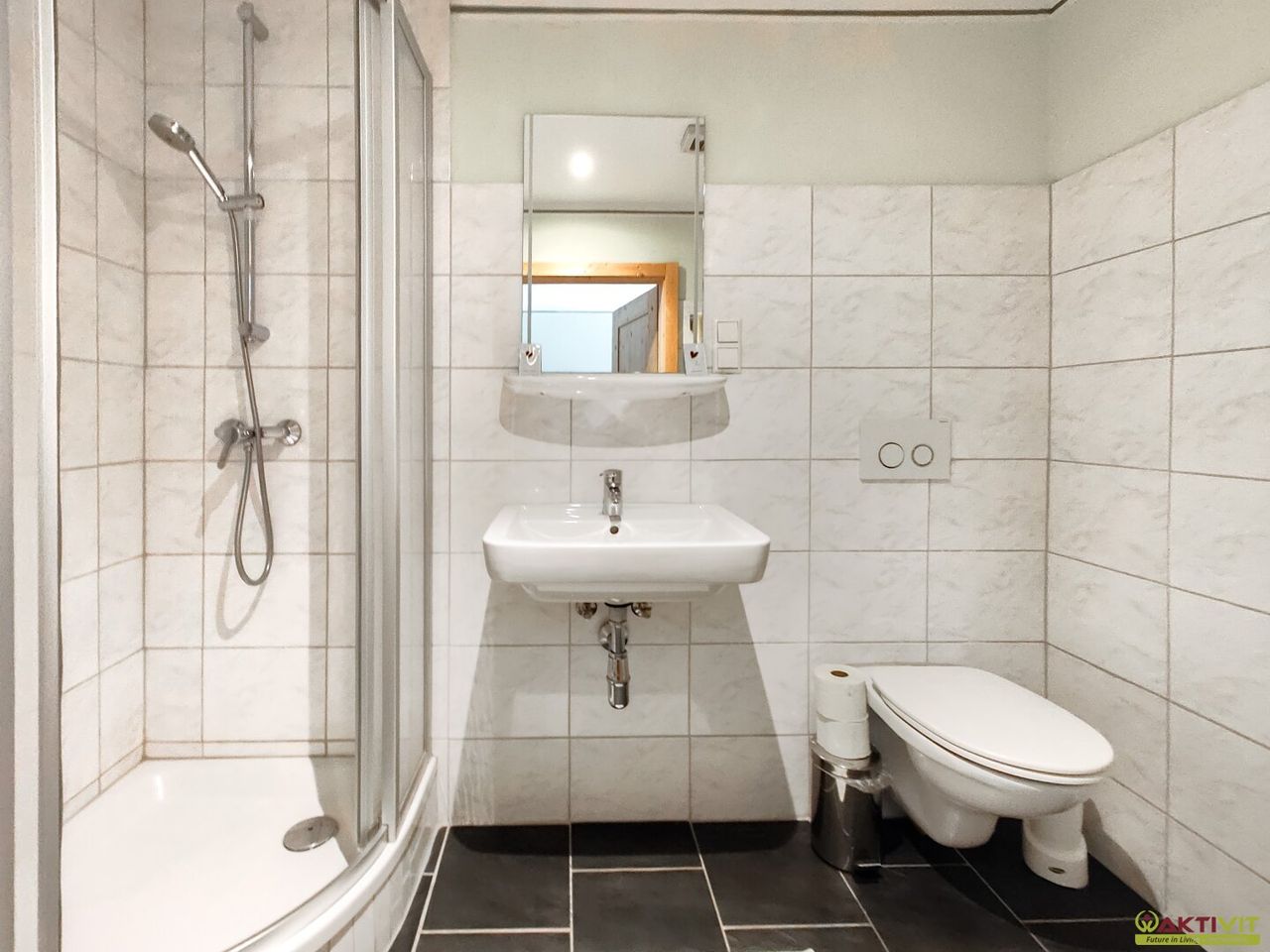 Das Obergeschoss umfasst ebenfalls mehrere Zimmer, einen Vorraum, einen Abstellraum sowie ein Badezimmer mit Dusche und WC. Von dieser Etage aus ist zudem eine Terrasse erreichbar.