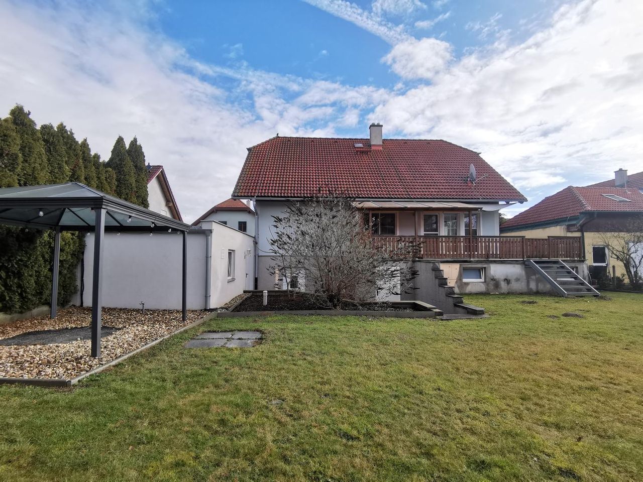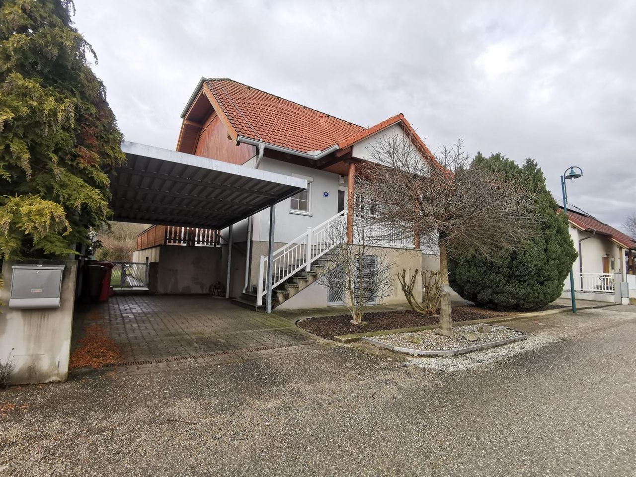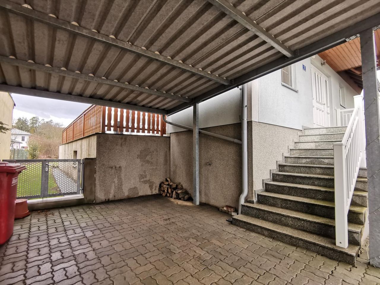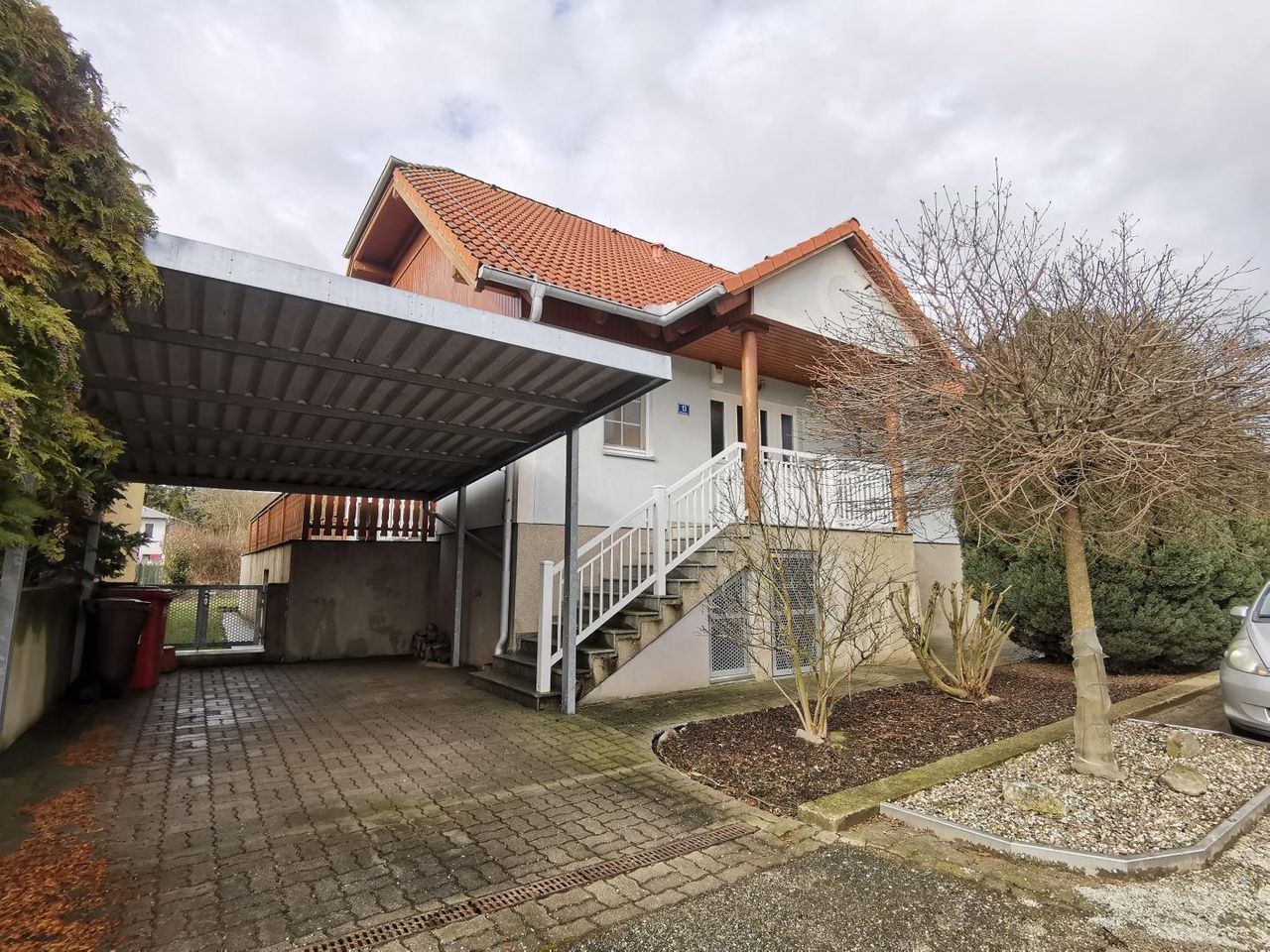 Die Garage würde später dazu gebaut und bietet Platz für zwei Autos. Zusätzlich gibt es noch ein Carport.