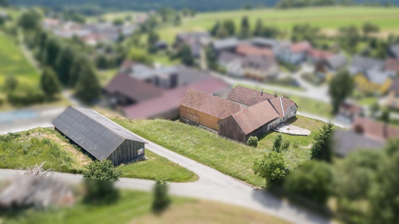 Das Gebäudeensemble liegt eingebettet in einem ca. 3.246 m² großen Grundstück mit der Flächenwidmung Bauland-Agrar/Grünland.und umfasst das Wohnhaus, ehemalige Stallungen sowie Scheunen.