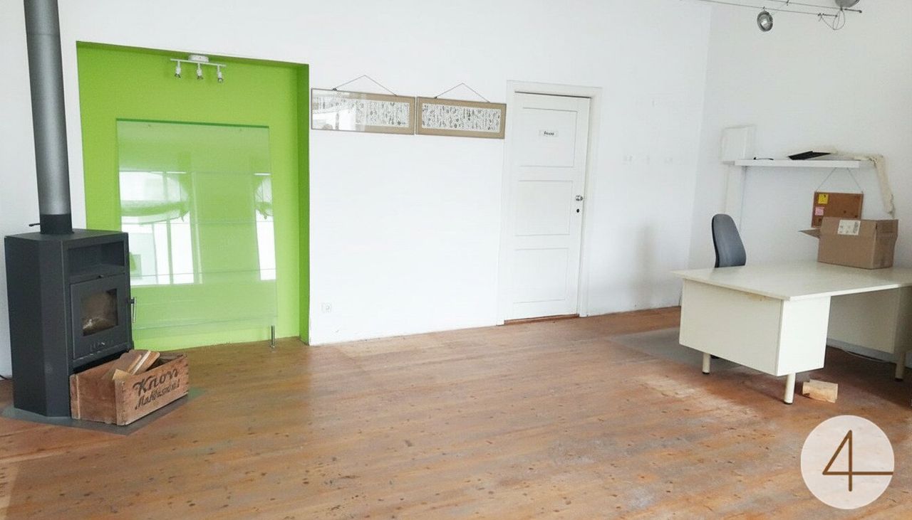 Diese Wohneinheit war einst ein Verkaufsladen und könnte mit ein wenig Geschick wieder zu einem Gewerbebereich umgewandelt werden.