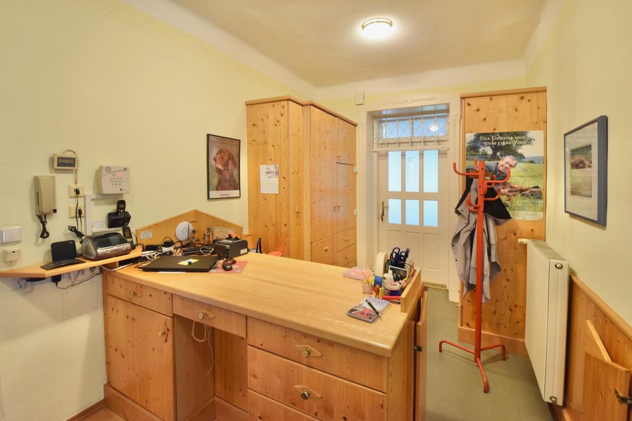 Der angeschlossene Zubau wurde Anfang der 90-er Jahre realisiert und wurde mit viel Fingerspitzengefühl an den Stil des Haupthauses angepasst, sodass es zu keinerlei optischem Bruch kommt. Dieser Zubau bietet vielfältige Möglichkeiten. So war hier in den letzten Jahrzehnten eine Tierarztpraxis eingerichtet, aber auch jegliche Art von Bürobetrieb ist denkbar, genauso, wie eine zweite abgeschlossene, aber doch mit dem Haupthaus verbundene, Wohneinheit mit sechs Zimmern lässt sich hier einfachst umsetzen.