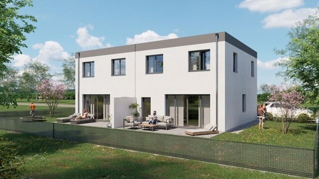 + ZIEGELMASSIVBAUWEISE + 2 Parkplätze + Fussbodenheizung mit Luftwärmepumpe + schlüsselfertig inklusive möblierter Küche + 97,05 m² Wohnnutzfläche, 18 m² Terrasse, ca. 114 m² Garten + 3 Schlafzimmer im Obergeschoss + Baustart bereits erfolgt, geplante Fertigstellung Juni 2026, Schlüssel- und bezugsfertig 3 Monate nach Interessensbekundung