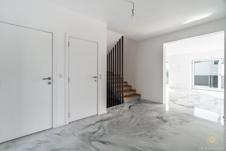 Die Immobilie ist mit modernen Annehmlichkeiten ausgestattet, darunter Kunststoffboden und Fertigparkett, die nicht nur pflegeleicht sind, sondern auch eine ansprechende Optik bieten. Die Fußbodenheizung sorgt für ein angenehmes Raumklima und Wohlfühlatmosphäre, während die innovative Luftwärmepumpe für effiziente Heiz- und Kühlmöglichkeiten sorgt.