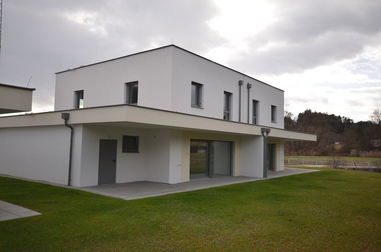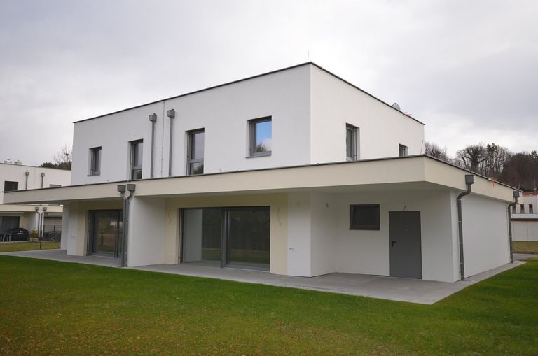 Im Erdgeschoß betreten Sie Ihr Haus durch ein geräumiges Vorzimmer, in dem ausreichend Platz für eine Garderobe ist. Die getrennte Gäste-Toilette befindet sich ebenso praktischerweise auf dieser Ebene. Genauso ein äußerst praktikabler Abstellraum zur Unterbringung Ihrer Utensilien. Ein Technikraum für die Heizung ist ebenfalls im Erdgeschoß untergebracht. Zur überdachten Terrasse mit dem wunderbaren Blick in den Garten gelangen Sie durch das großzügige Wohnzimmer mit der offenen Küche. Durch die zahlreichen Fenster und Terrassentüren kommt ausreichend Tageslicht in Ihr neues Zuhause.