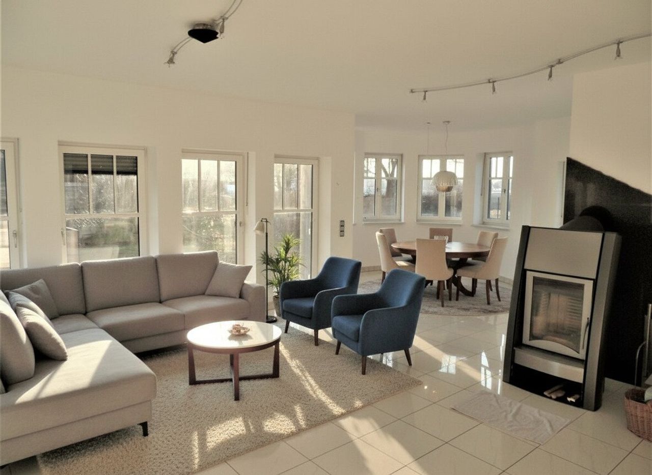 Das Haus besticht durch seine hochwertige Ausstattung: edle Fliesen, Parkett- und Steinböden sorgen für ein stilvolles Wohngefühl. Die Fußbodenheizung und der Schwedenofen garantieren angenehme Wärme an kalten Tagen. Drei moderne Bäder die teilweise mit Fenster ausgestattet sind und...