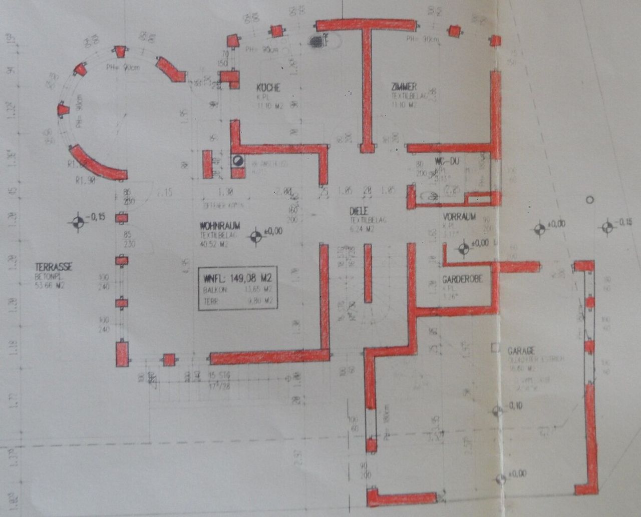 Keller: Vorraum (ca. 6,87), Badezimmer mit WC (ca. 3,13 m²), Waschraum ( ca. 11,10 m²), Lagerraum (ca. 11,10 m²), Kellerraum (ca. 30,40 m²), Lagerraum (ca. 14,94 m²), Partyraum (ca. 31,00 m²), Technikraum (ca. 8,25 m²).