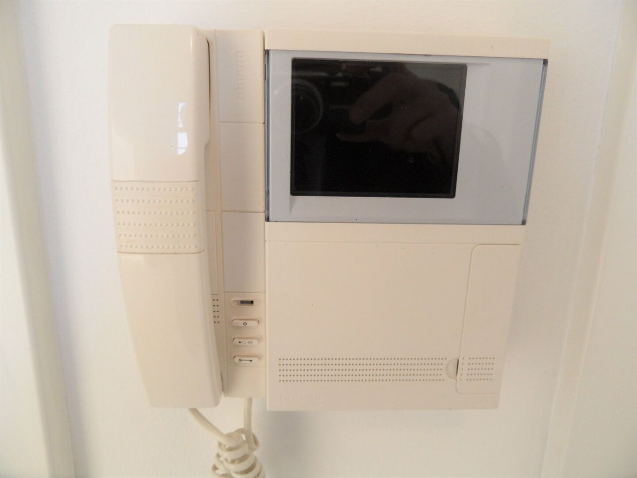 Im Erdgeschoss und auch im Obergeschoss befindet sich eine Sprechanlage mit Bildschirm, mit dem man den Eingangsbereich überblickt.