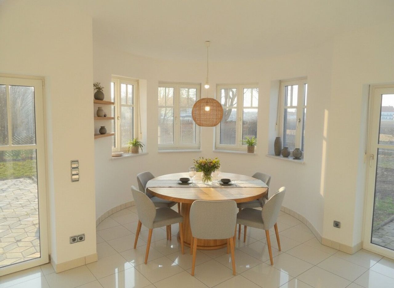 Das Haus besticht durch seine hochwertige Ausstattung: edle Fliesen, Parkett- und Steinböden sorgen für ein stilvolles Wohngefühl. Die Fußbodenheizung und der Schwedenofen garantieren angenehme Wärme an kalten Tagen. Drei moderne Bäder die teilweise mit Fenster ausgestattet sind und drei WCs bieten höchsten Komfort für Sie und Ihre Familie. Die Einbauküche ist funktional und modern gestaltet – hier macht Kochen richtig Freude.