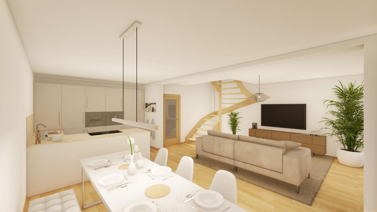 Das offene Raumkonzept gepaart mit natürlichen, hochwertigen Produkten mit modernen Böden und Feinsteinzeug versprühen eine bezaubernde Leichtigkeit für ein unvergleichliches Lebensgefühl. Weitere drei großzügige Zimmer sowie ein traumhaftes Bad komplettieren dieses Angebot.