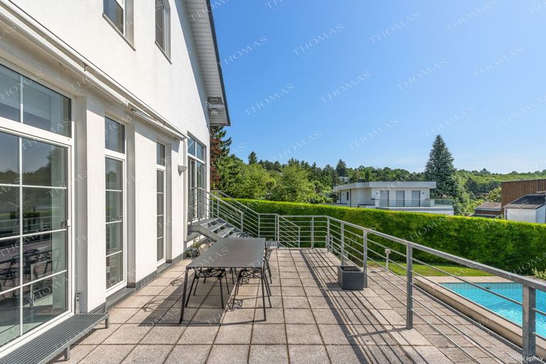 The well-maintained single-family home was built 1991 with solid construction and offers a generous plot of approximately 850 m², with a total usable area of around 408 m², including approximately 323 m² of living space. The thoughtful architecture and high-quality fittings create a living atmosphere of the highest class.