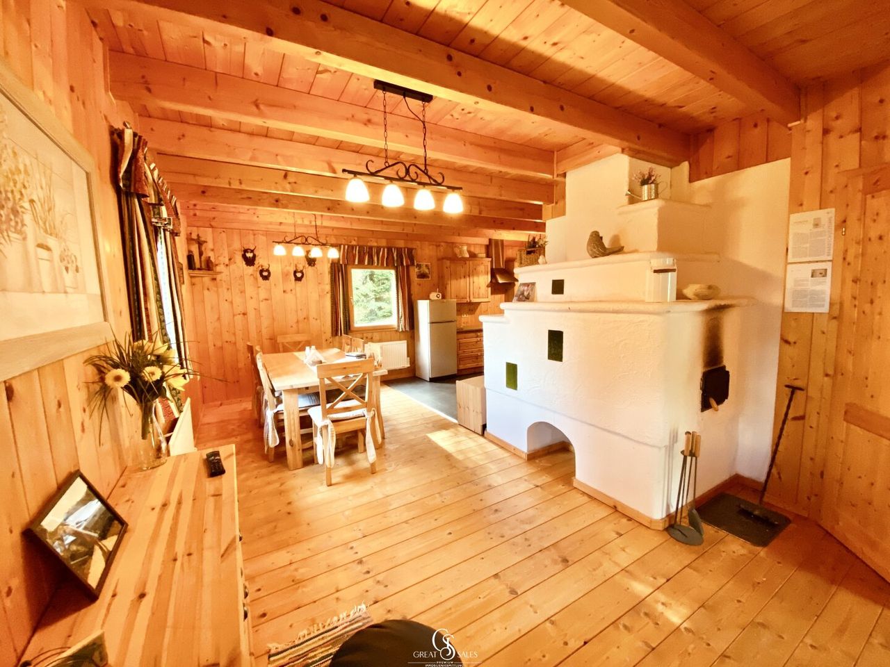Das Haus selbst bietet mit seiner durchdachten Raumaufteilung Platz für mehr als 8 Personen und vermittelt vom ersten Betreten an ein warmes, einladendes Wohngefühl. Helle Holzelemente, stilvolle Möbel und eine durchgehende Holztramdecke schaffen ein harmonisches Ambiente.