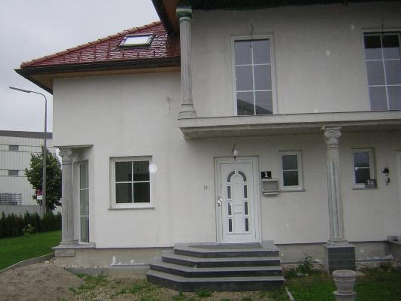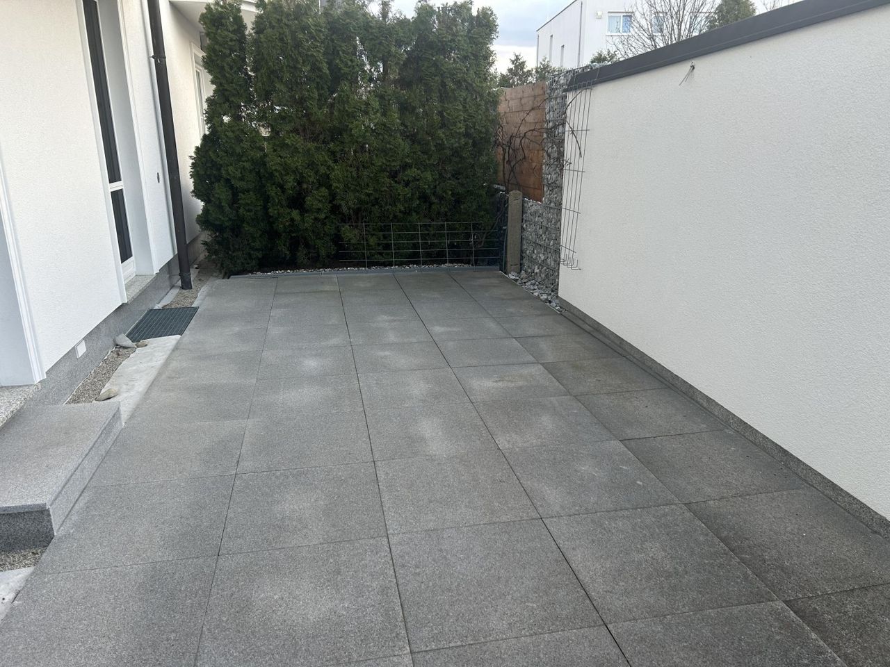 Vor dem Hauseingang befinden sich 2 PKW Stellplätze und eine Terrasse mit kleinem Garten vor dem Haus.