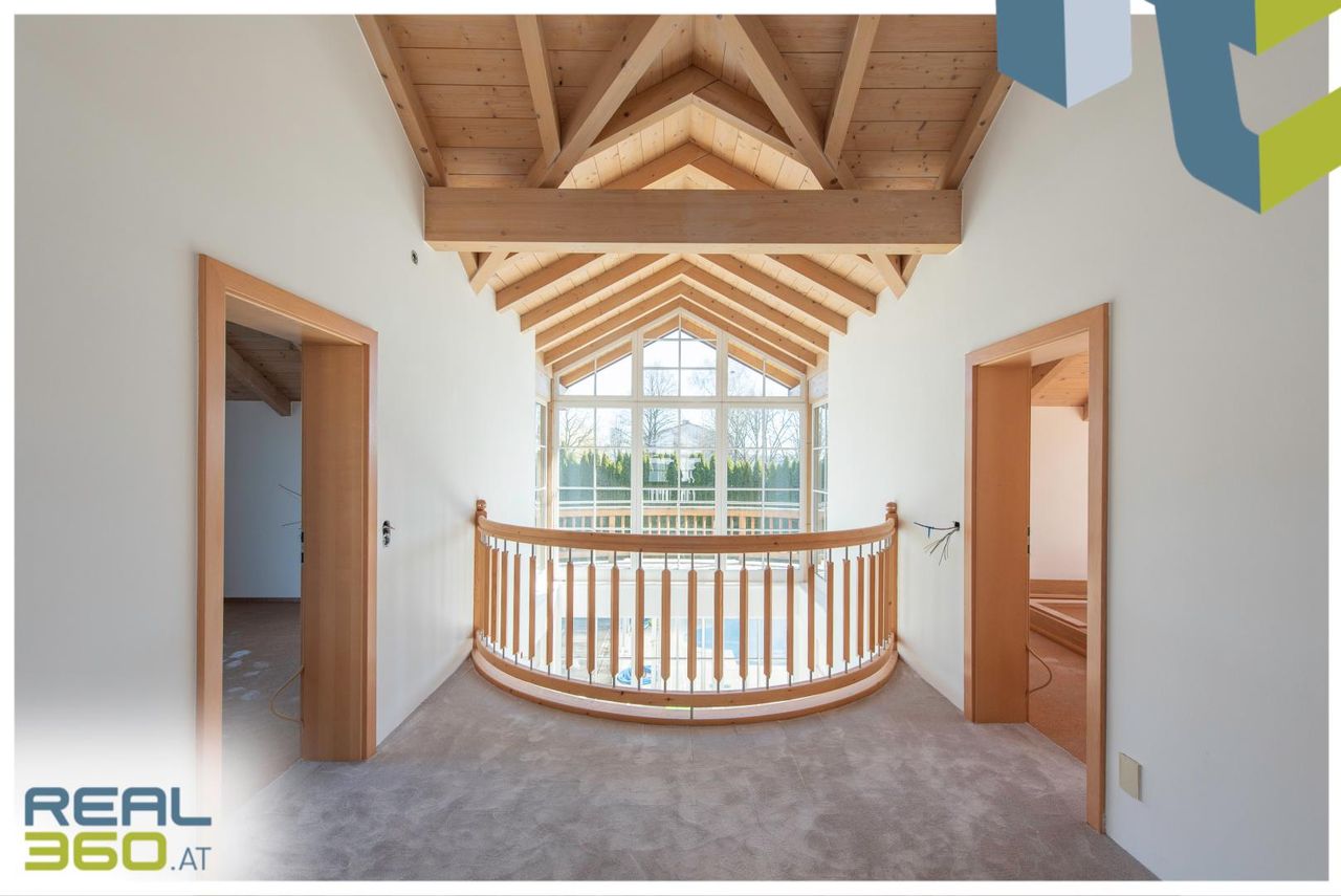 Diese stilvolle Landhausvilla vereint luxuriöses Wohnen mit höchster Privatsphäre und einer ruhigen Lage. Das Grundstück von 800 m² ist uneinsichtig und bietet Ihnen ein Höchstmaß an Ruhe und Erholung unweit der Landeshauptstadt und nur 250m vom Ortszentrum Pasching entfernt.