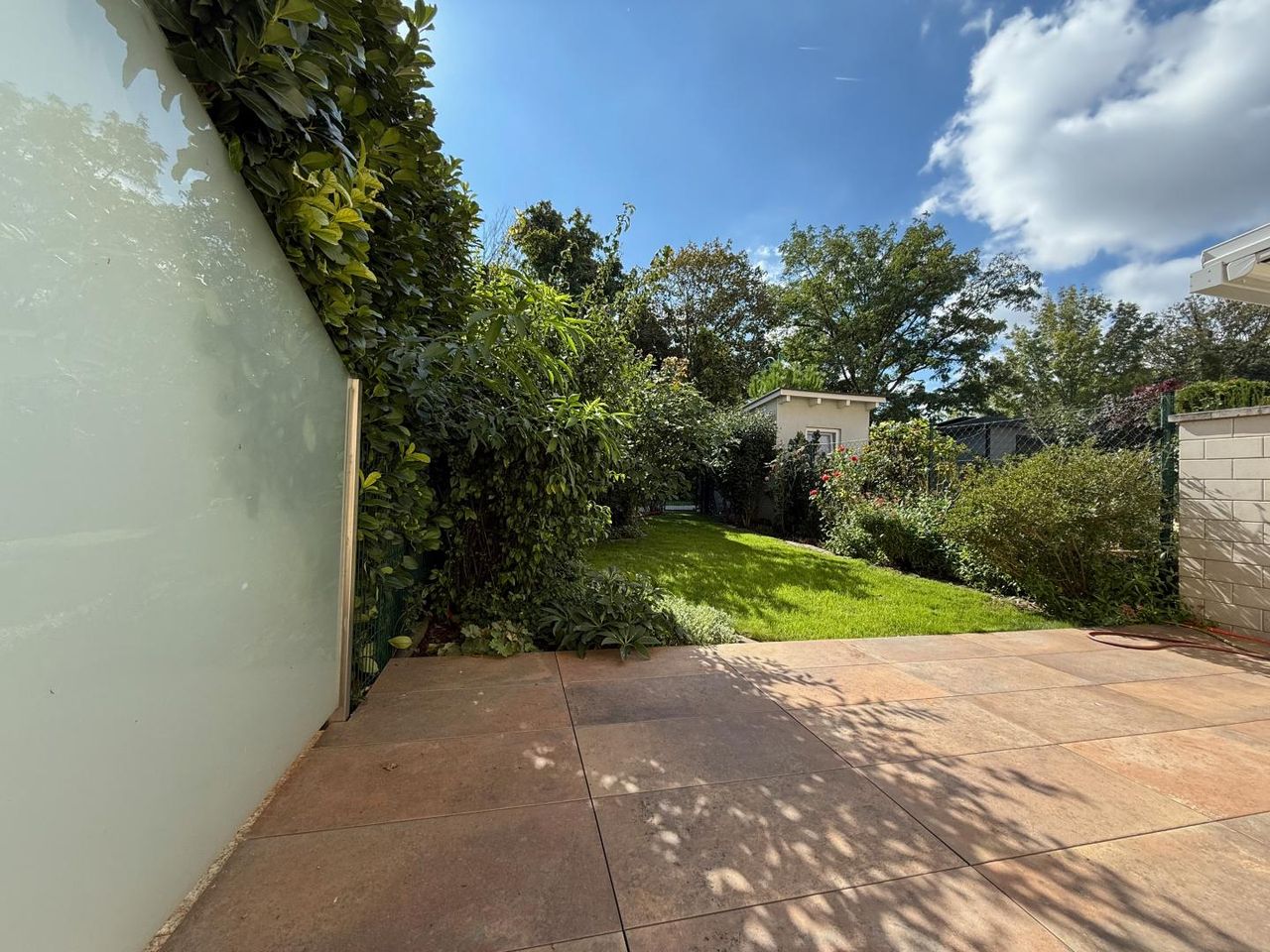 Gepflegter Garten mit Gartenhäuschen und direktem Zugang von außen
